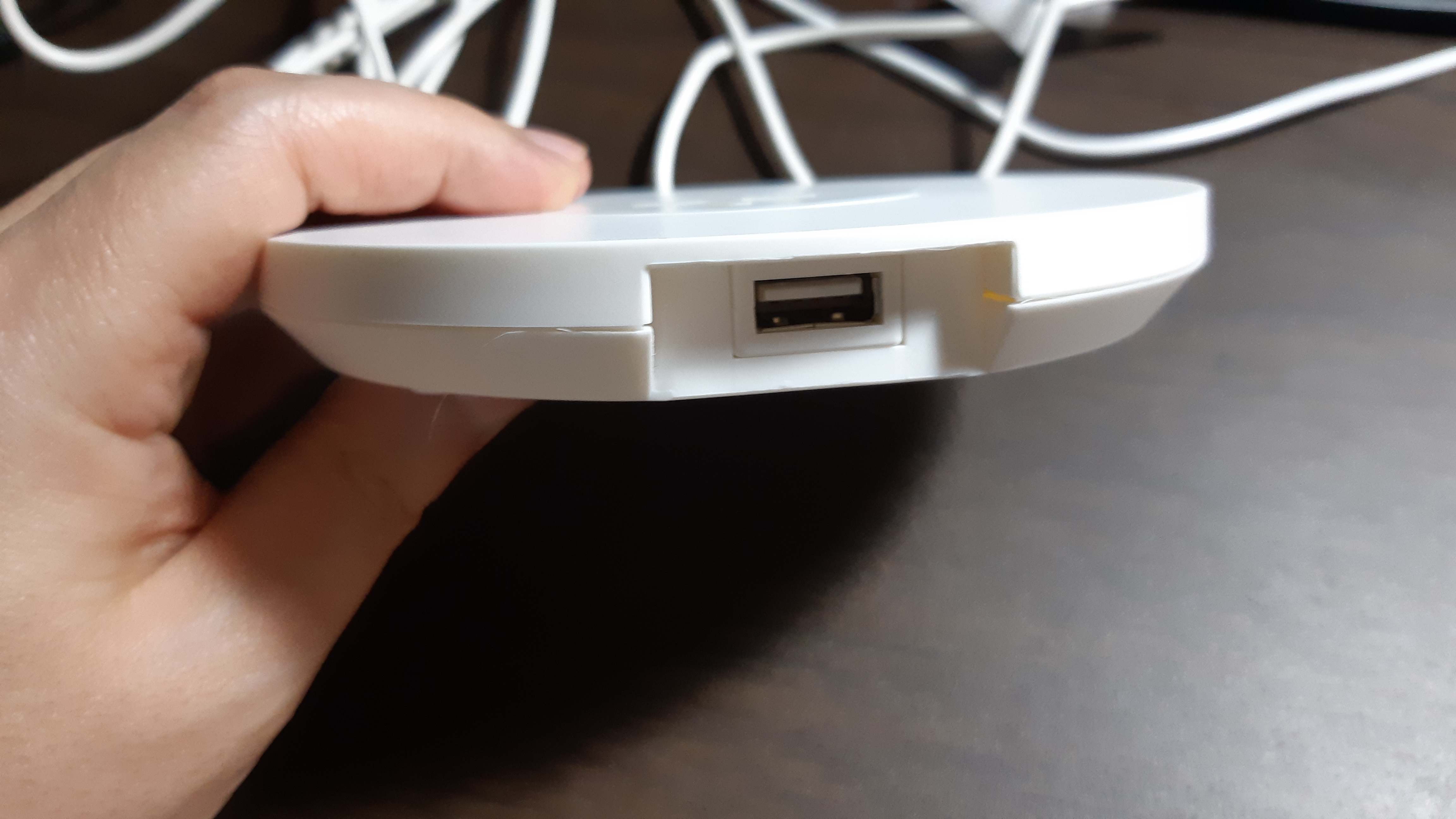 이렇게 무선충전을 하는 와중에 유선충전도 동시에 가능합니다.