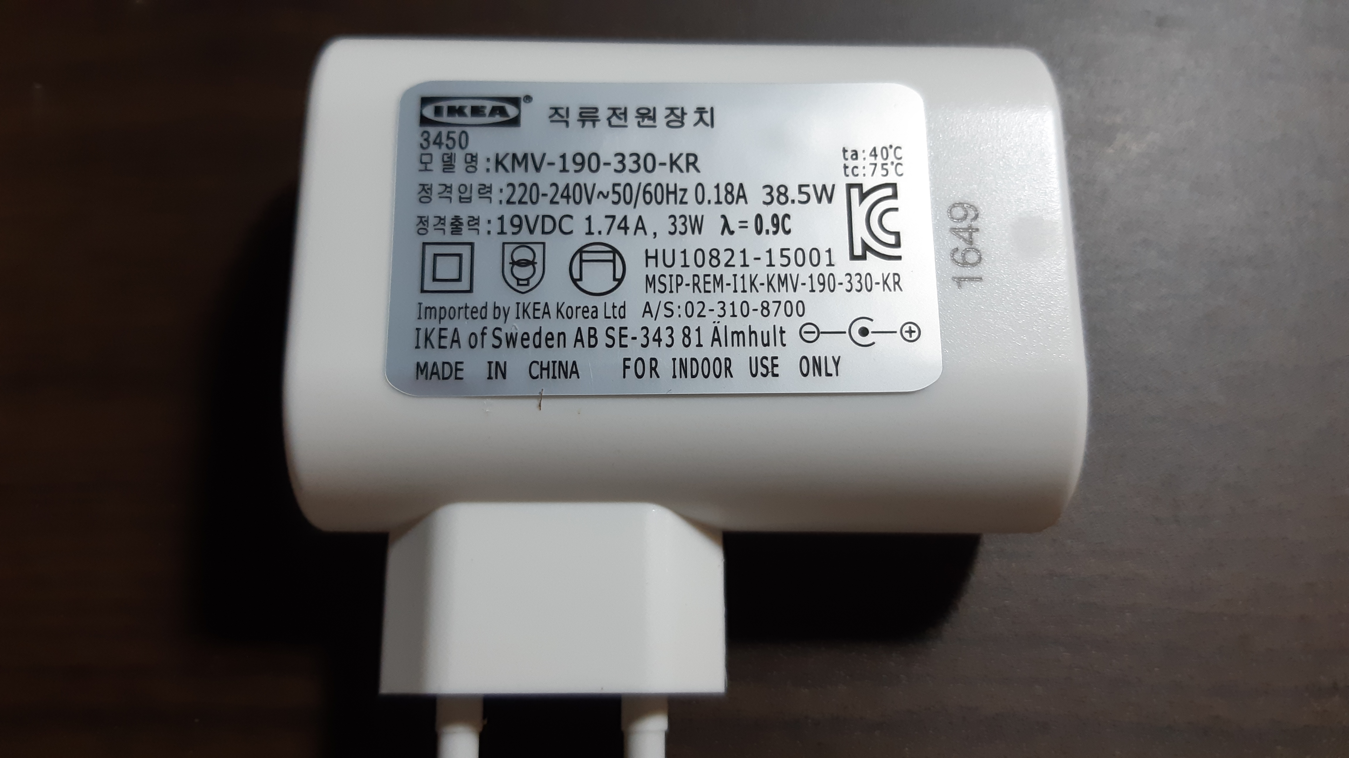 19V에 1.74A면 고속충전도 가능한 전압이니 괜찮아 보입니다.