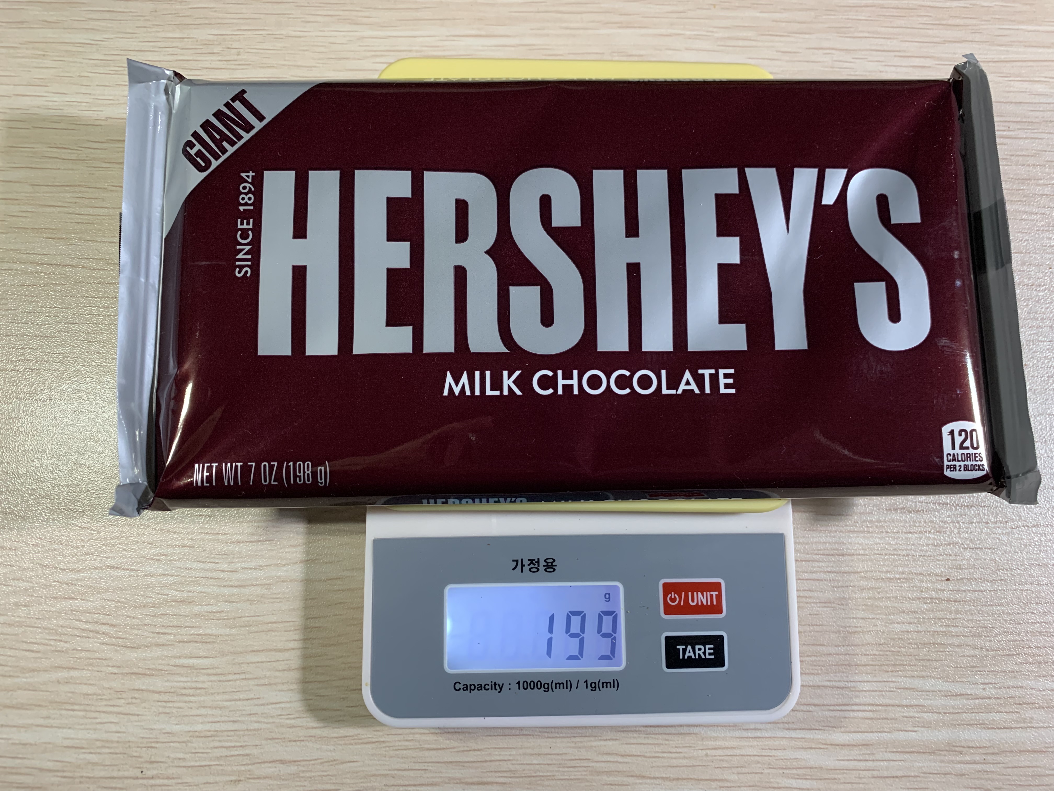 원래 구입하던 천원짜리 허쉬초콜릿에 비교하면 이번에 구입한 자이언트바는 굉장히 큽니다.