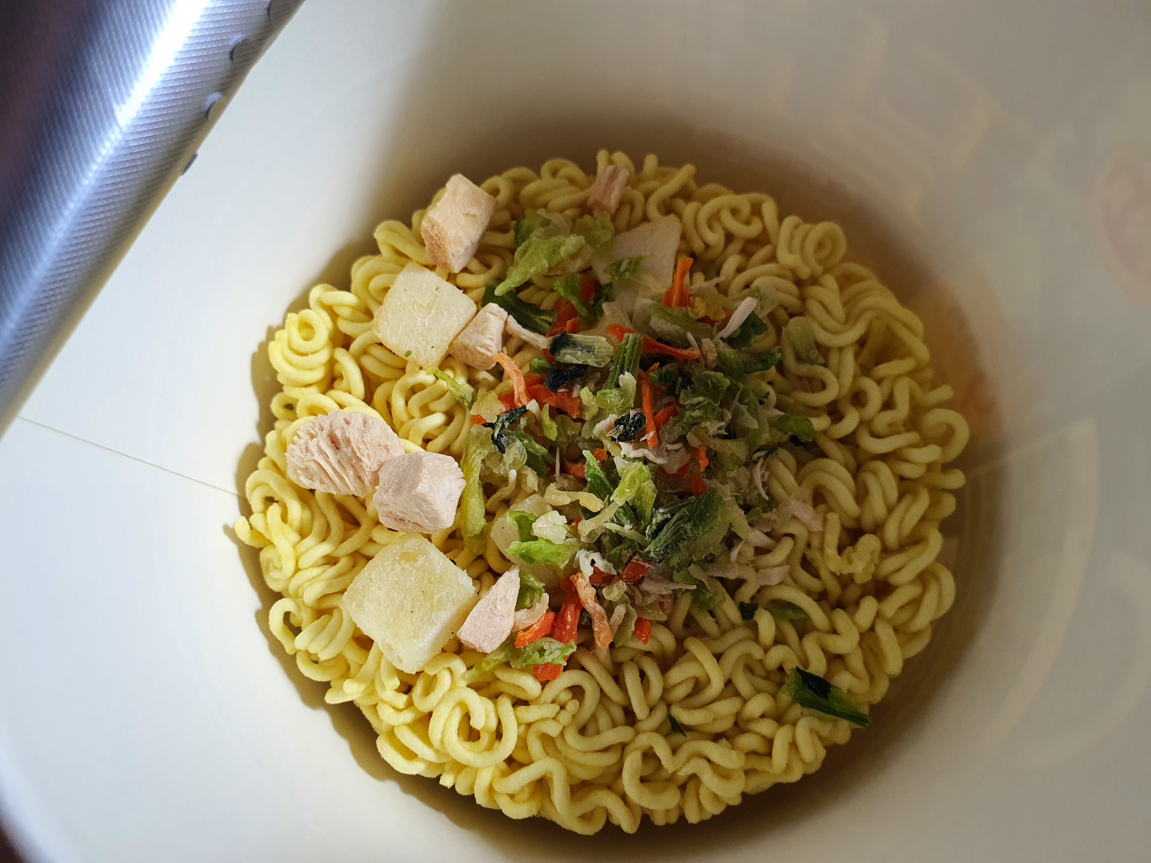 나름 닭고기처럼 보이는 덩어리가 다섯개가량 들어있고, 포함된 야채의 수준도 상당하네요.