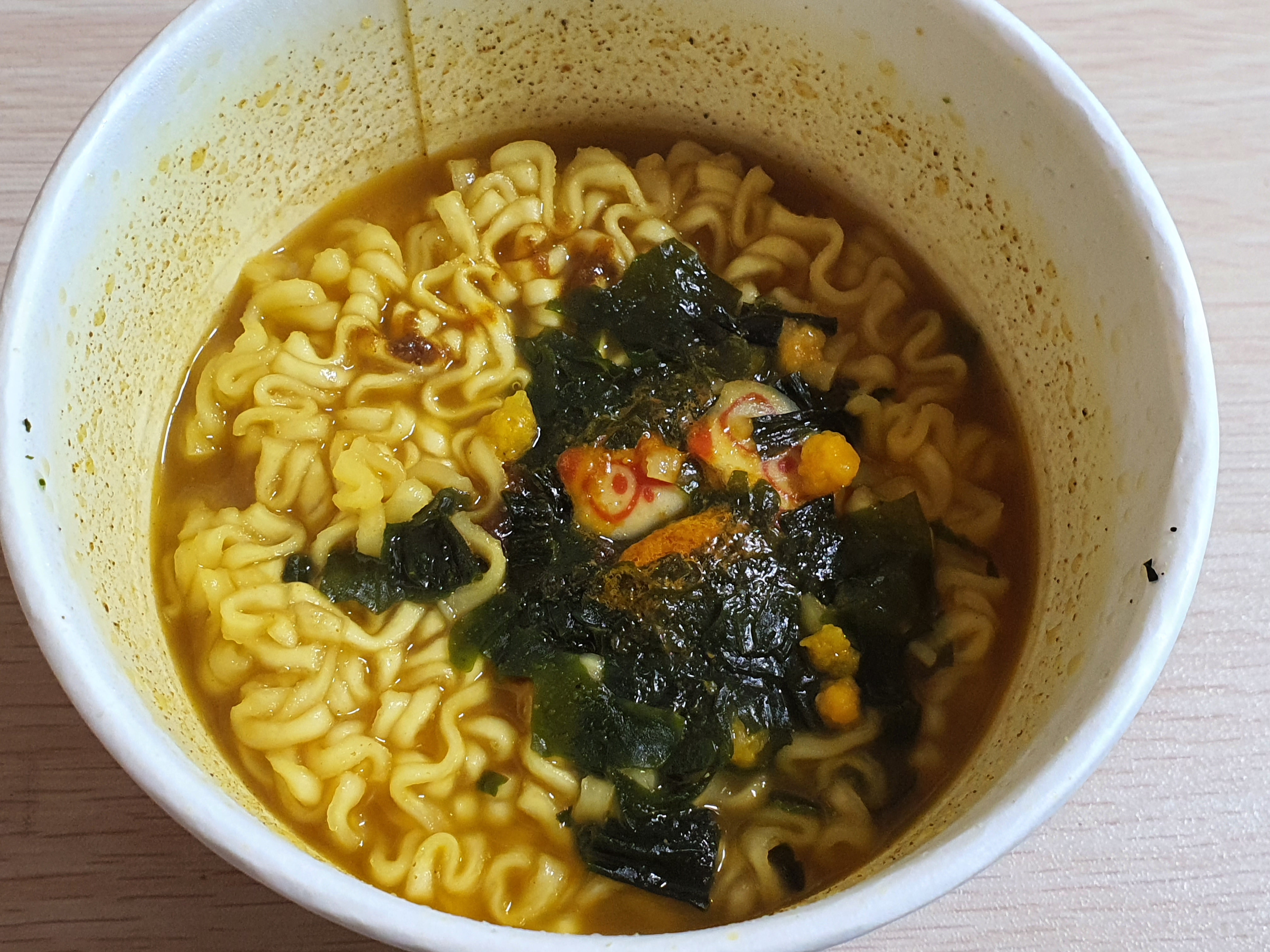 너구리와 카레의 조화가 나쁘지는 않았지만 카레의 좀더 진한맛을 기대한 저로서는 뭔가 밍숭맹숭한 카레맛이 아쉽게 다가왔습니다. 아무래도 좀더 진한 카레맛이 났으면 좋았겠지만 생각보다 향만큼 맛이 강하지 않았습니다.