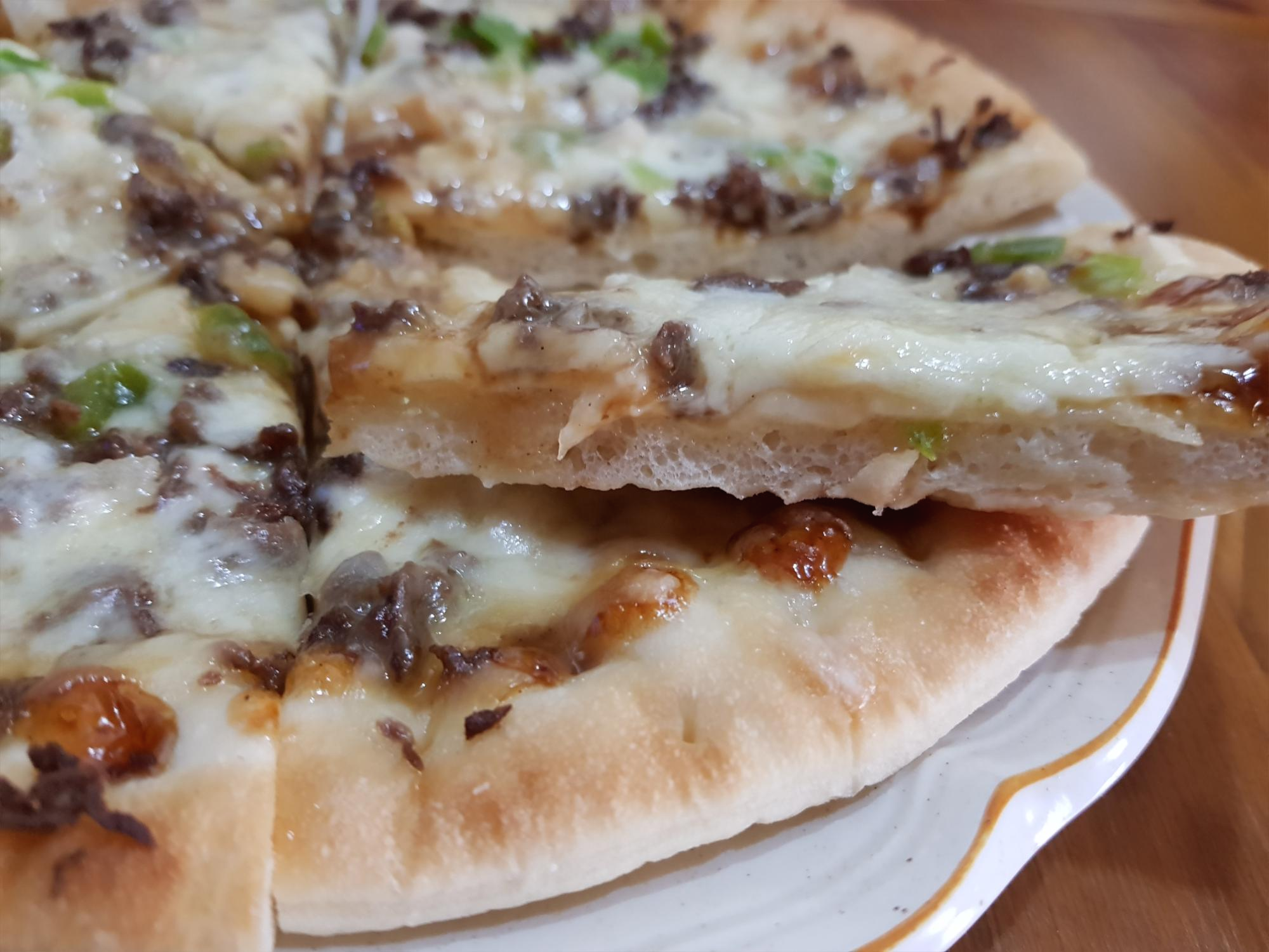 우리가 흔히 먹는 그런 불고기 피자의 모습과 거의 비슷합니다. 그래도 불고기 토핑이 너무 작고 얇아서 그건 아쉽네요.