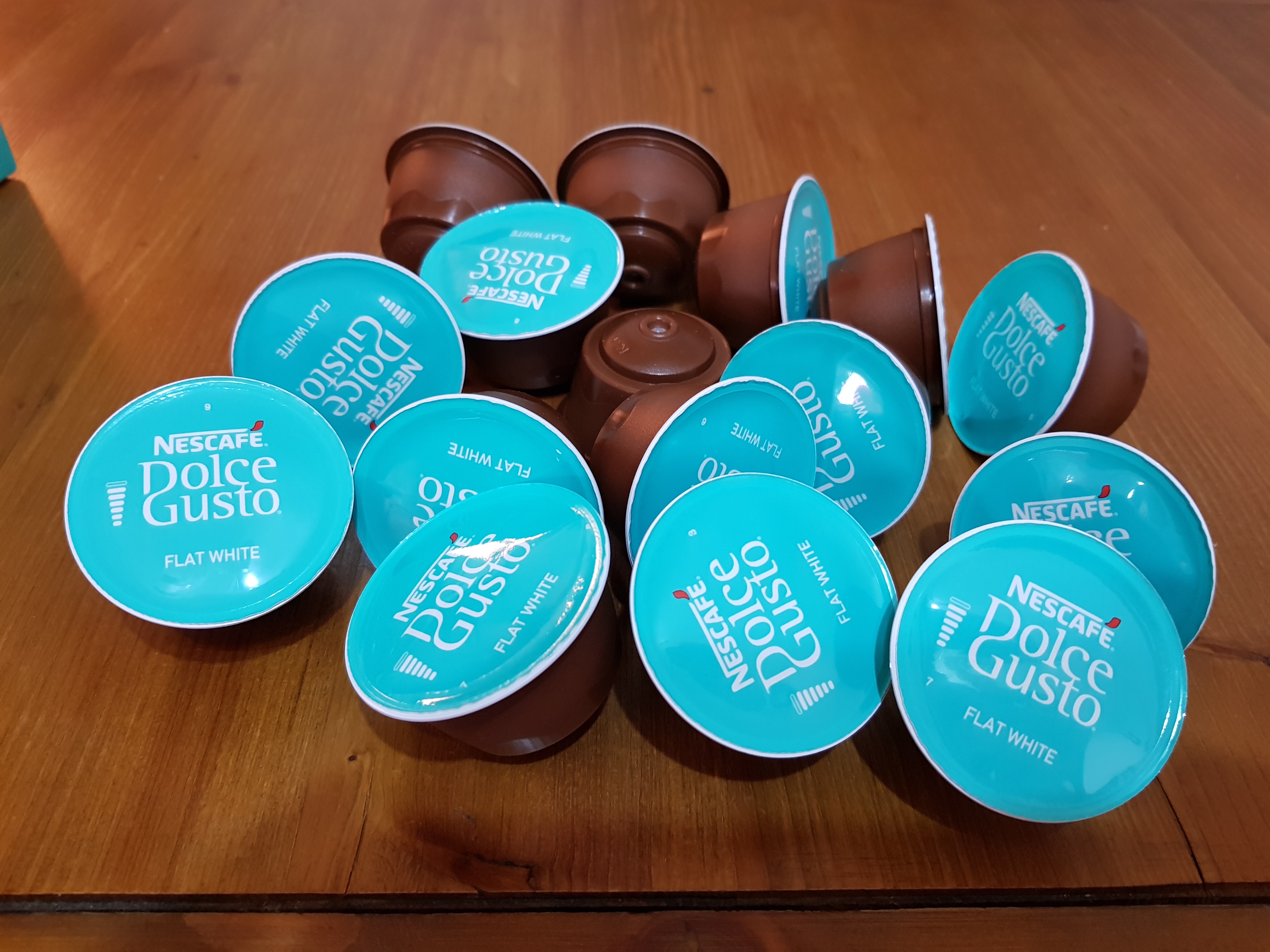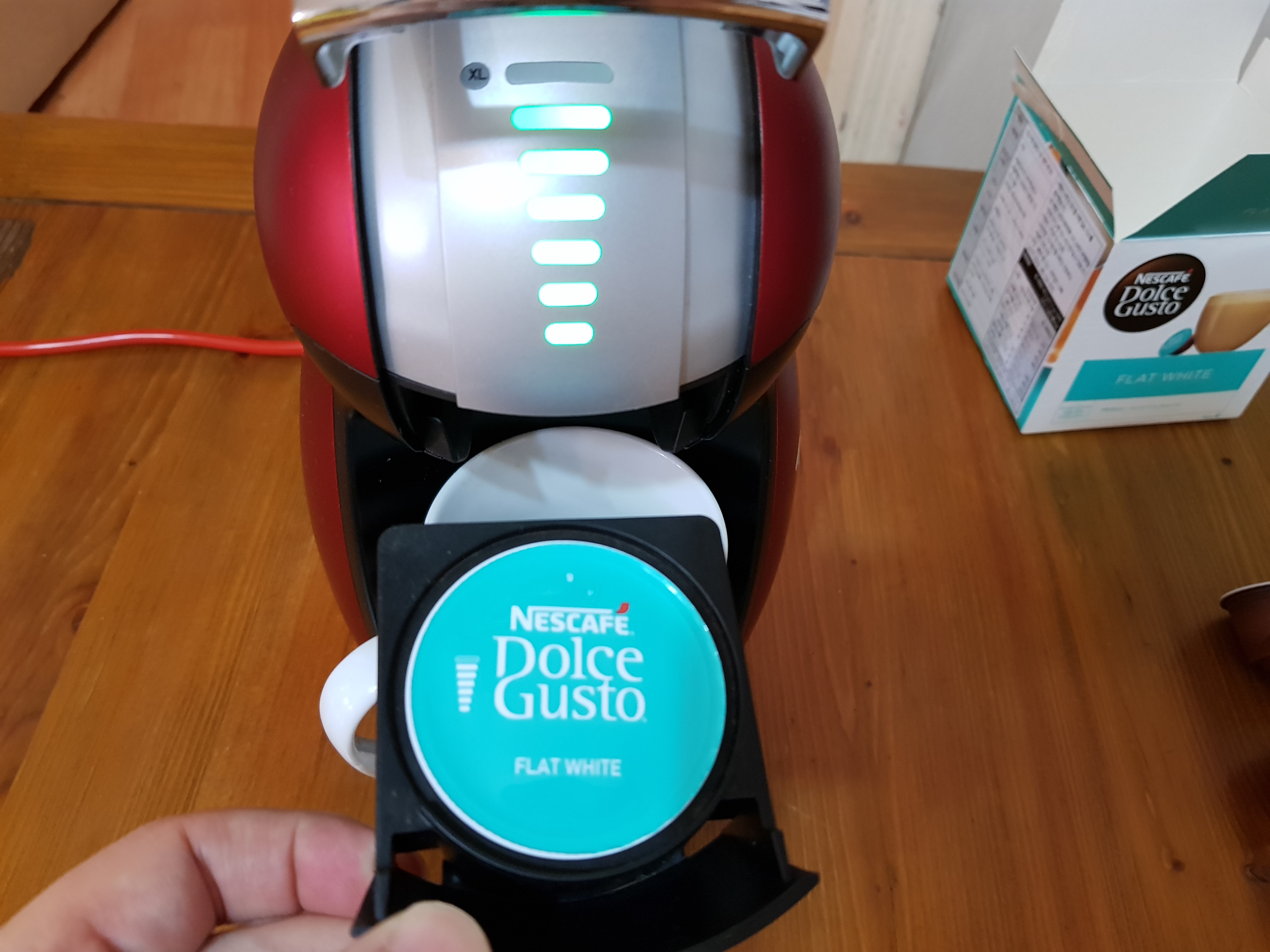 원래 우유가 섞이는 커피는 캡슐이 두개 들어가는데 플랫화이트는 한개로 뽑아주면 됩니다.
