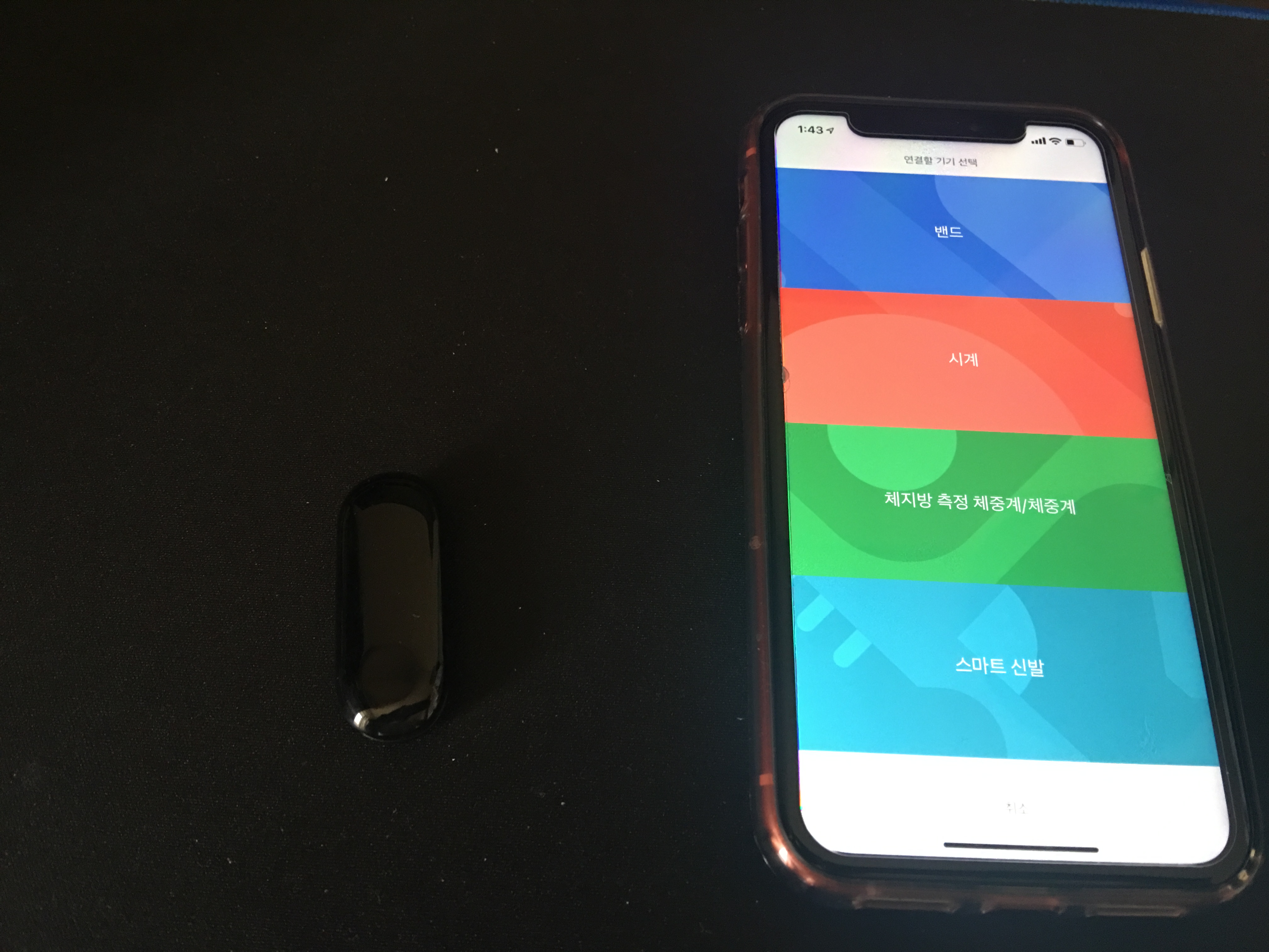 그러면 이렇게 기기를 선택하라는 내용이 뜹니다. 여기서 밴드를 터치하면 됩니다.