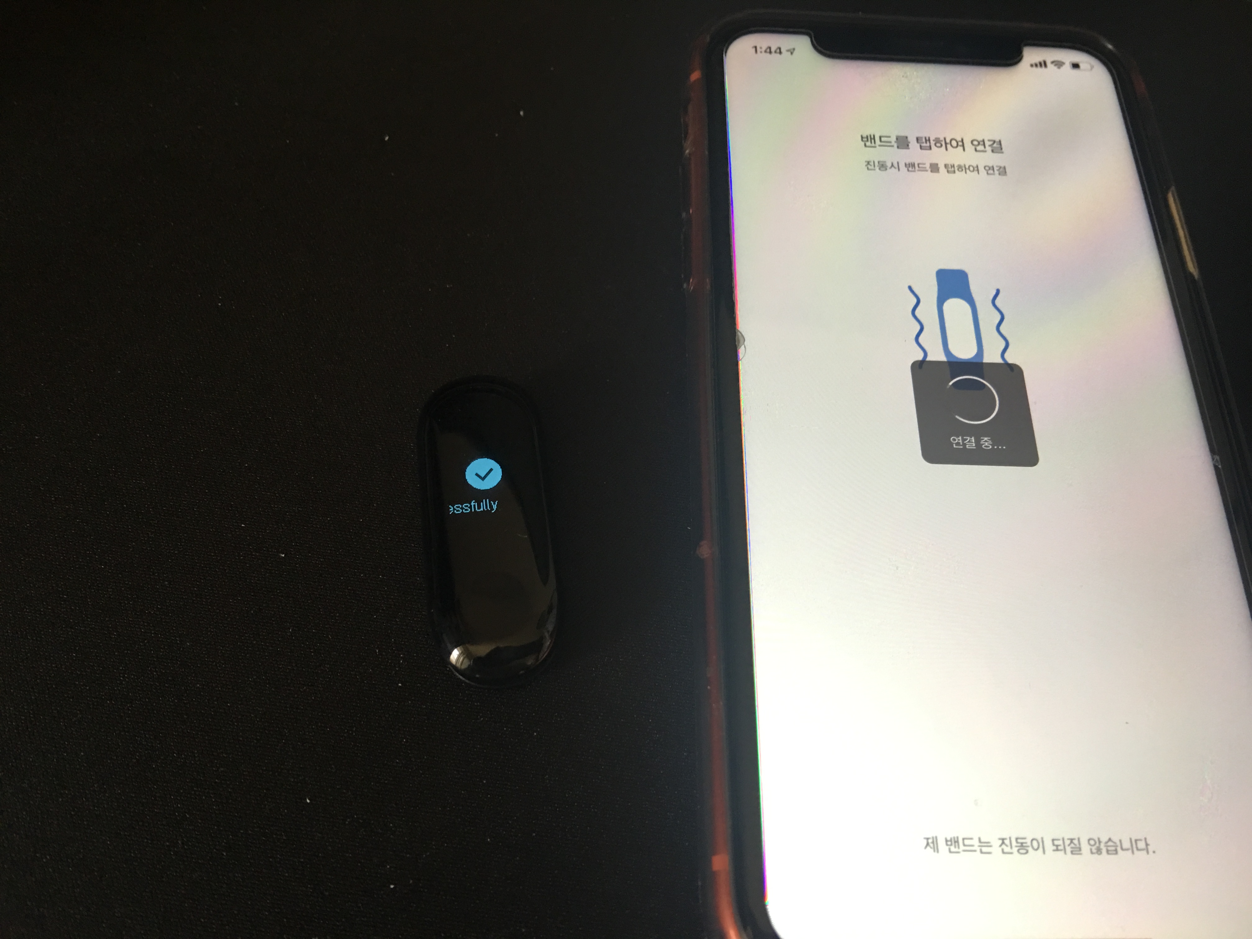 짧게 스쳐가는 연결화면이 뜨고 난후 폰과 미밴드가 연결을 위해 검색을 시작합니다.