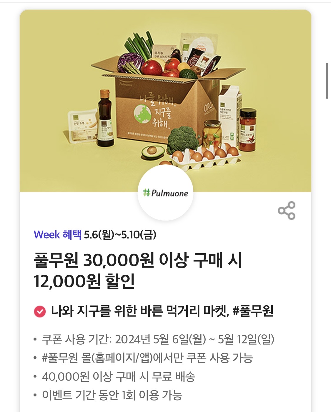 그리고 풀무원에서도 3만원이상 구매시에 12000원 할인을 받을수 있습니다.