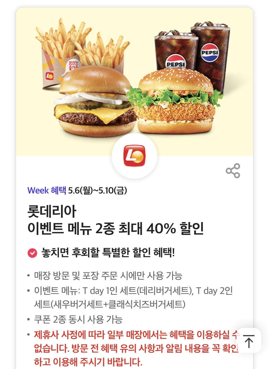 | 롯데리아 5월 5일 잇츠데이 행사 (0) | 2024.05.05 |