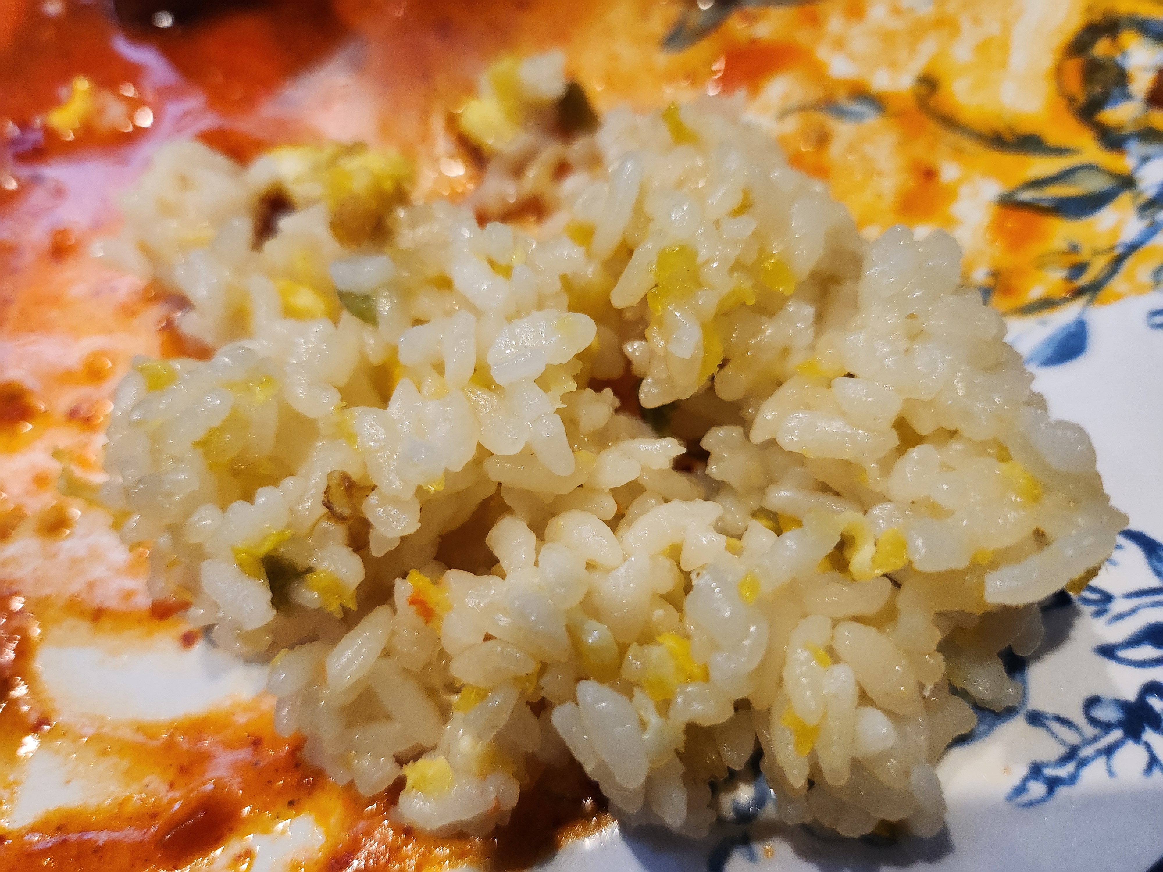 비치된 볶음밥을 조금 가져와 짬뽕국물에 넣어봤습니다.