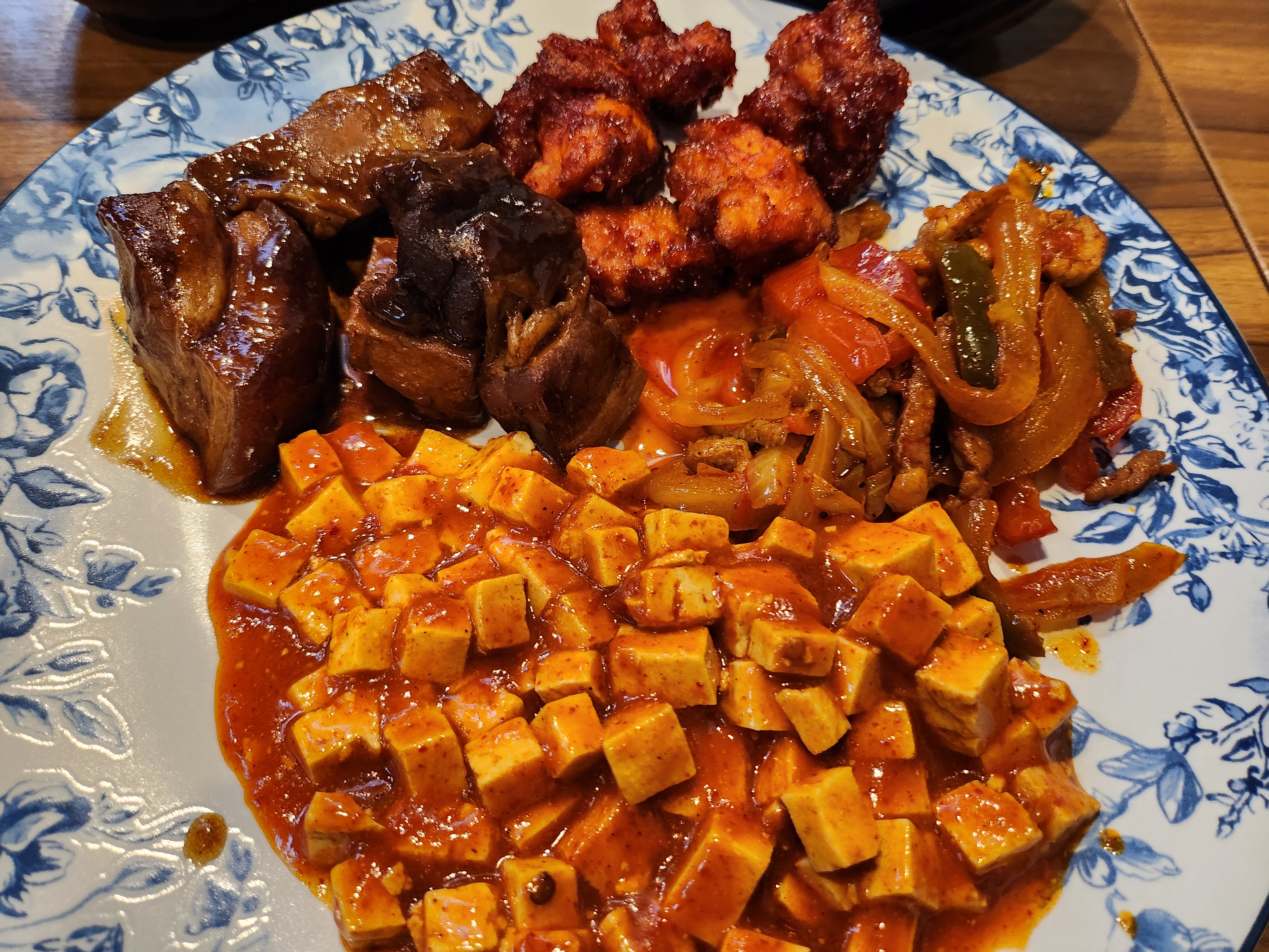 큰 접시에는 마파두부와 깐풍기, 고추잡채와 함께 동파육을 담아왔습니다.