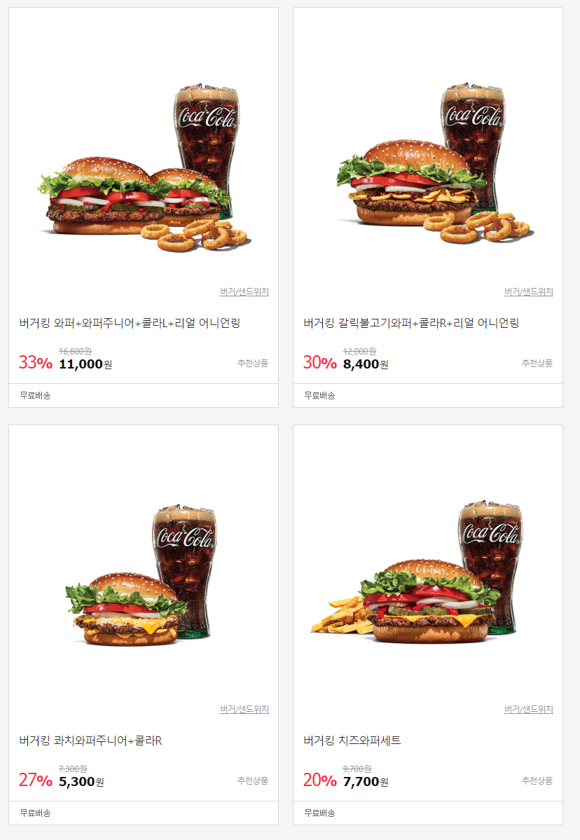 이중에서도 와퍼와 와퍼주니어, 콜라에 리얼 어니언링까지 포함된 쿠폰의 가격이 11000원이니 이 쿠폰도 좋아보입니다.