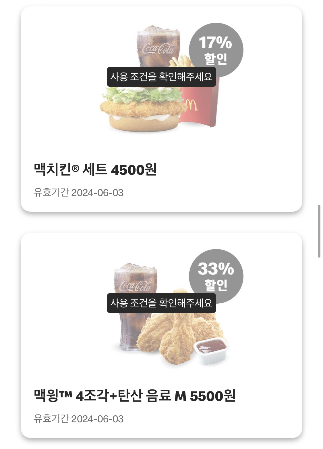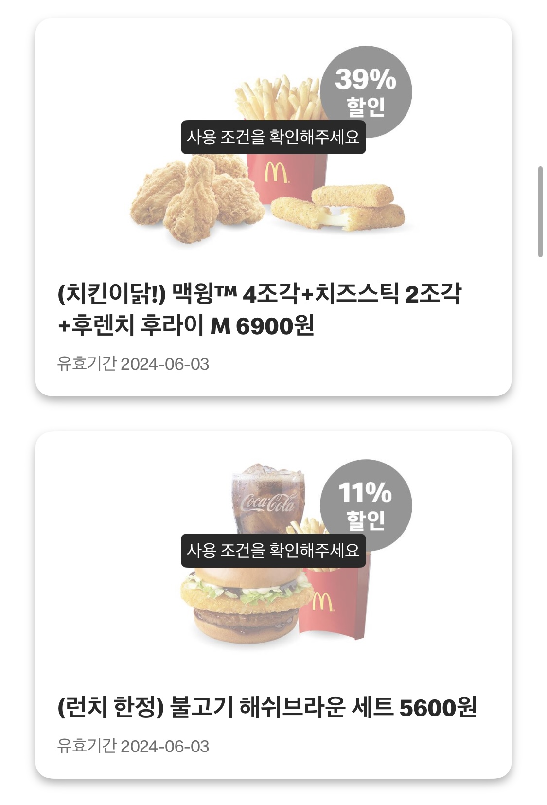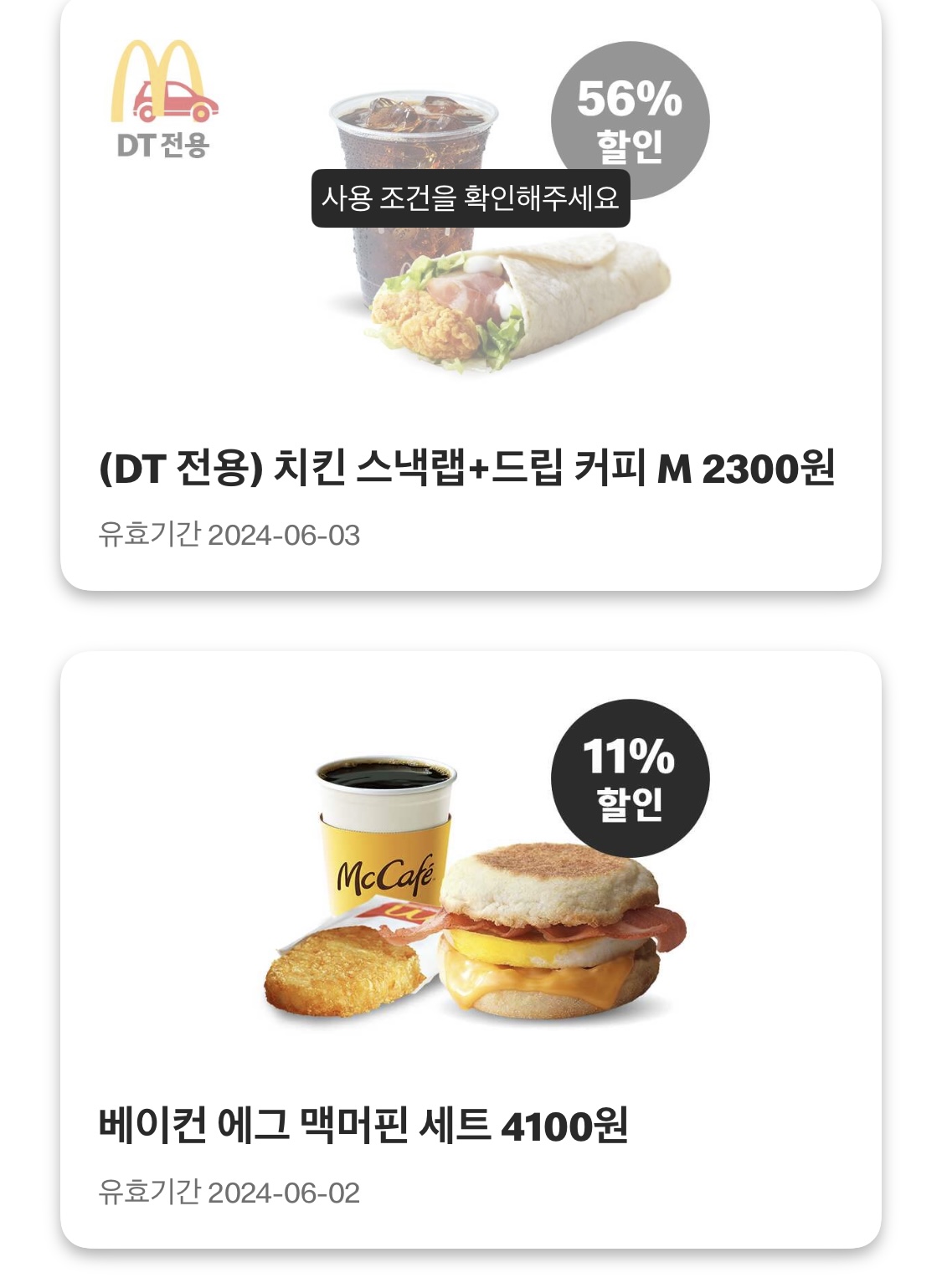 이번주 역시 맥도날드다운 괜찮은 행사를 진행하며, 언제든지 방문해도 가성비는 맥도날드가 가장 좋은듯한 느낌이네요.