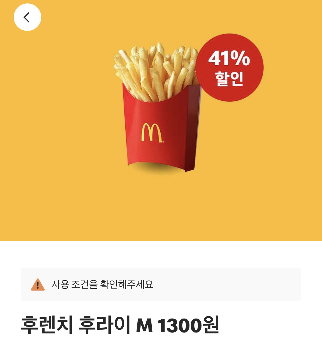 그리고 감자튀김 역시 1300원의 가격으로 할인됩니다.