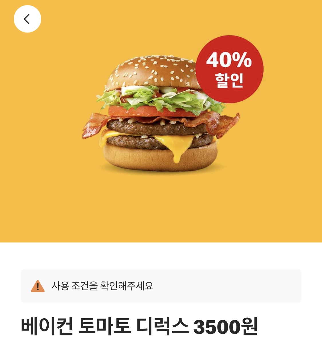 은근히 할인품목으로 자주 풀리는듯 하면서도 막상 구입하려고 하면 상하이버거로 대체되는 경향을 보이고 있는데, 이번주는 다행히도 상하이버거가 아닌 베이컨 토마토 디럭스가 할인됩니다.