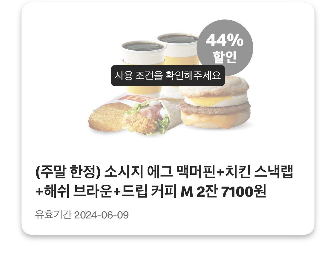 오늘 역시 새로운 맥도날드의 할인행사가 시작되었습니다.