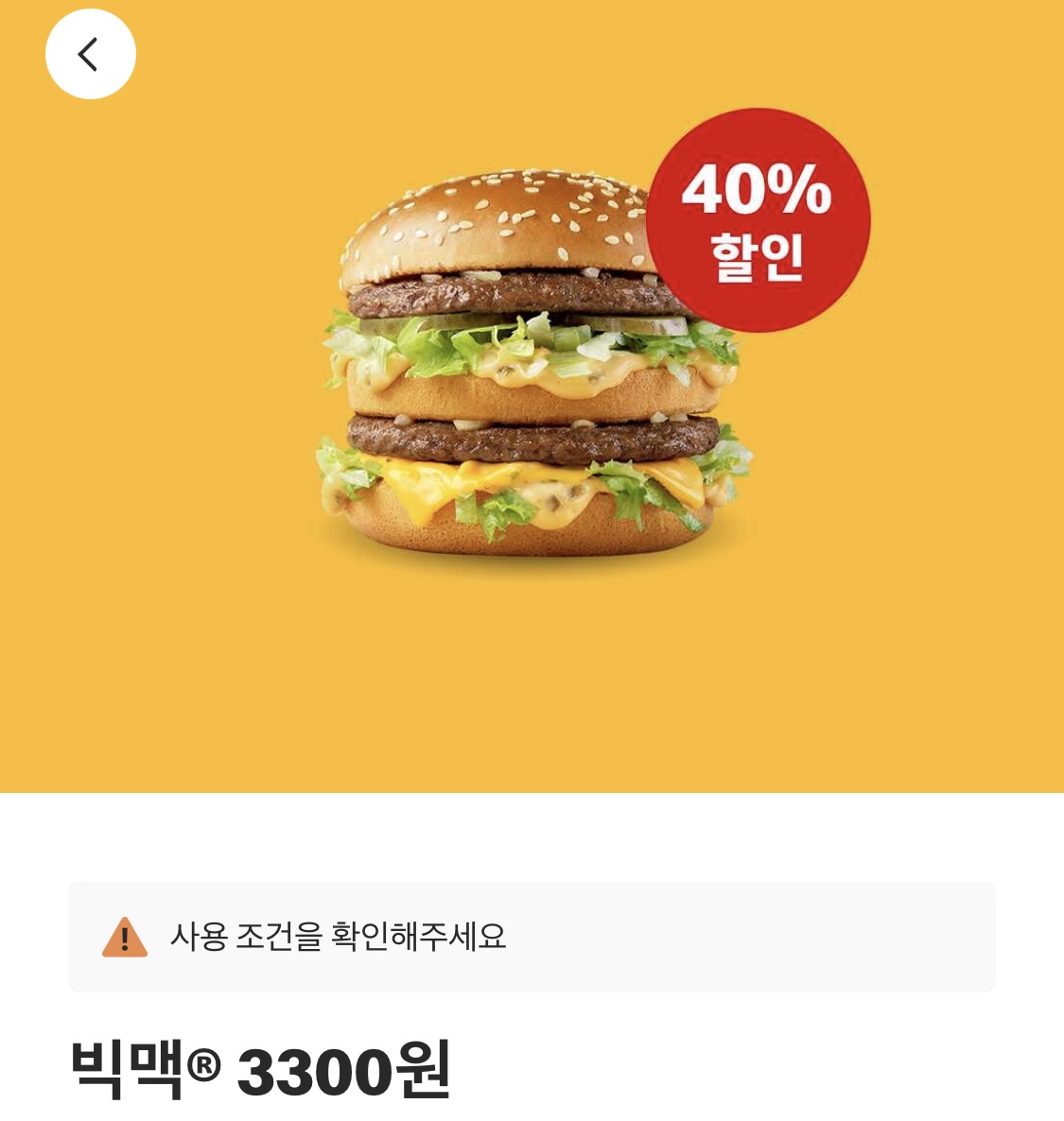 맥도날드의 대표적인 품목인 빅맥이 3300원의 가격으로 할인되어 판매됩니다.