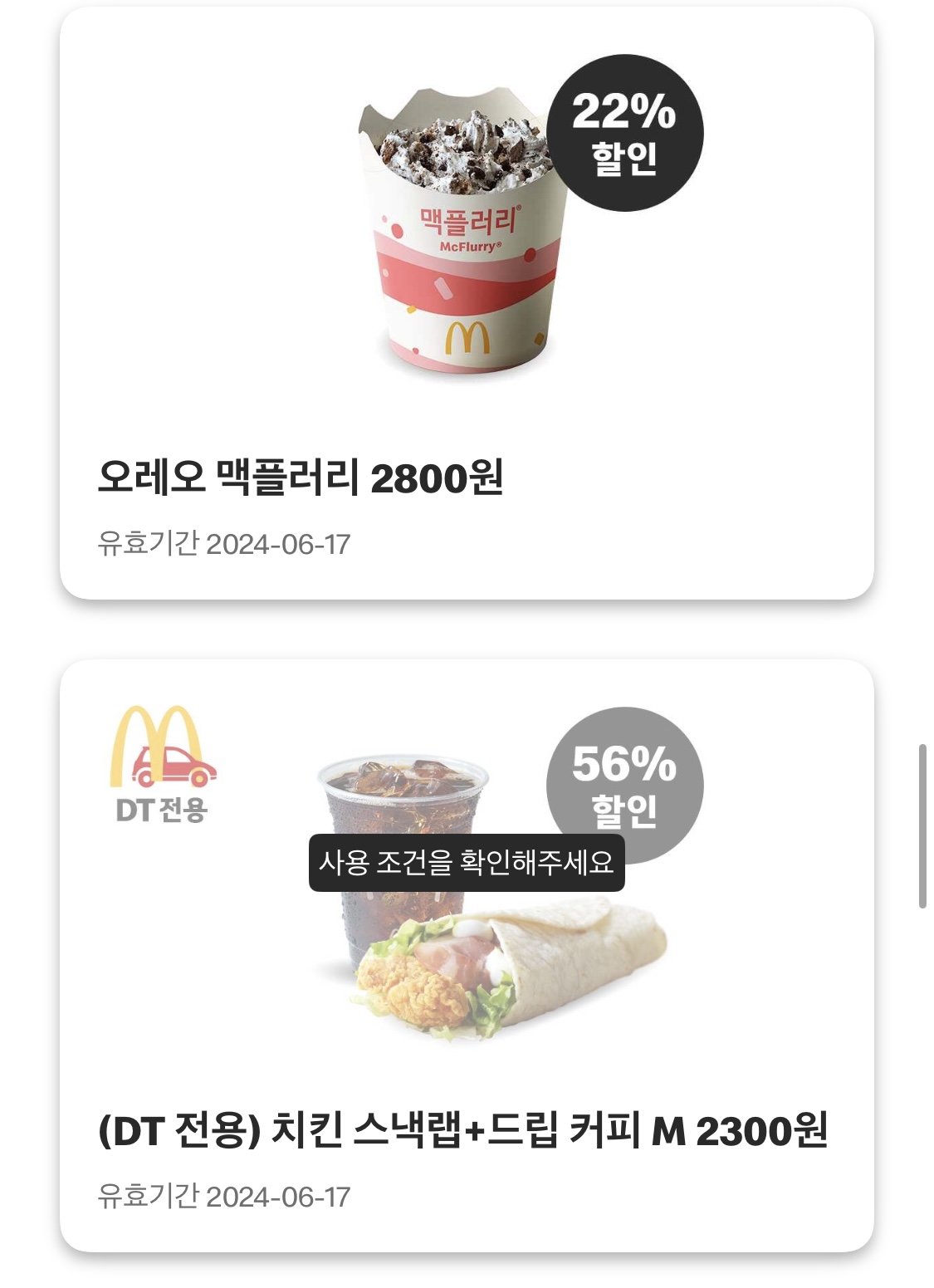 물론 맥플러리나 다른 제품들도 할인되긴 하지만, 전체적으로 이전보다 가격이 조금 올라갔다는 자체로 아쉬움이 느껴지진 합니다.