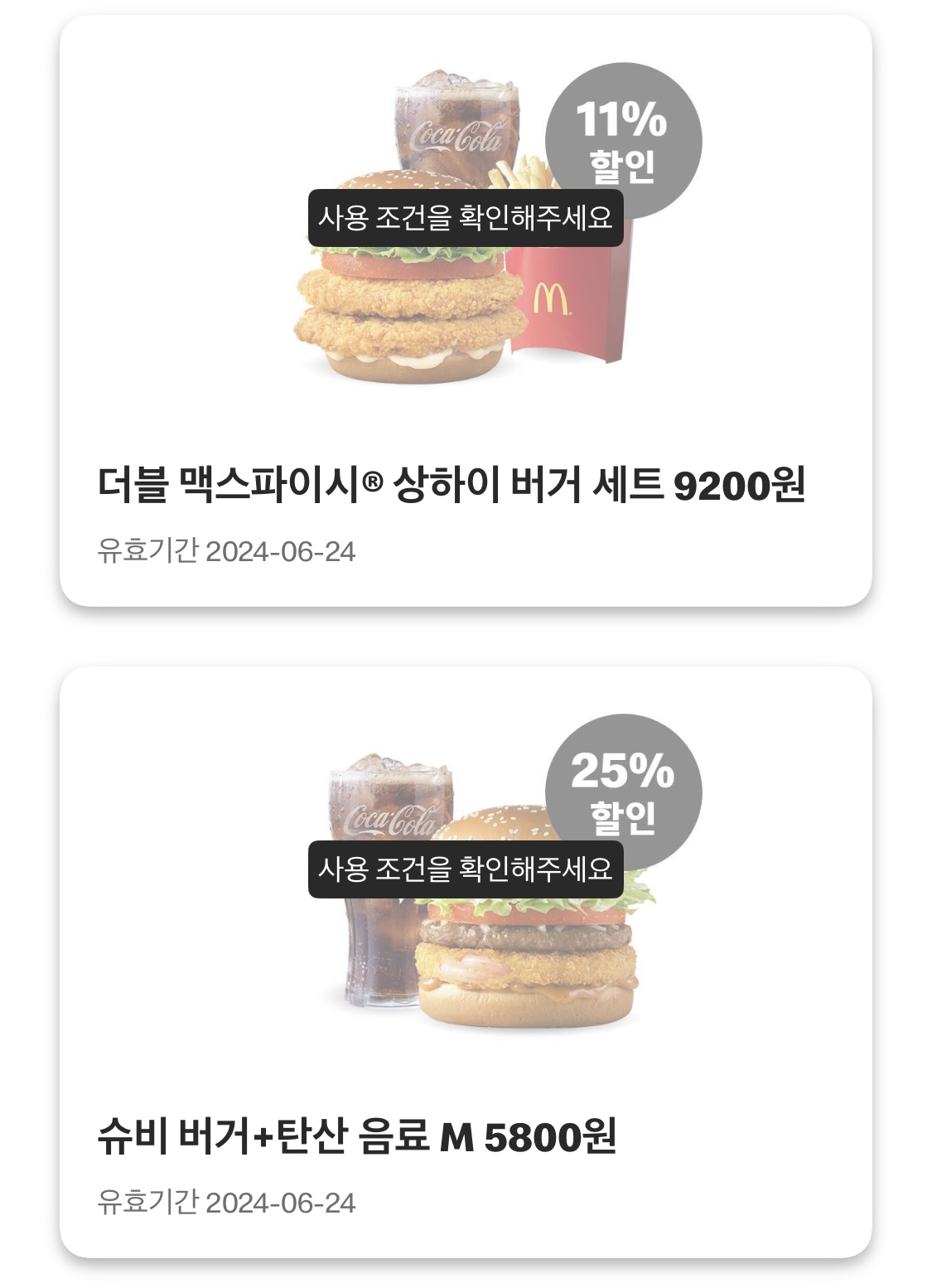 여전히 맥윙이 들어간 조합의 할인은 그렇게 좋은편이 아니지만, 그래도 슈비버거와 음료의 조합이 5800원이며 더블 맥스파이시 상하이버거 세트도 9200원의 가격이니 이런 쿠폰을 한번쯤 시간에 맞추어 이용해보는것도 나쁘지 않겠습니다.