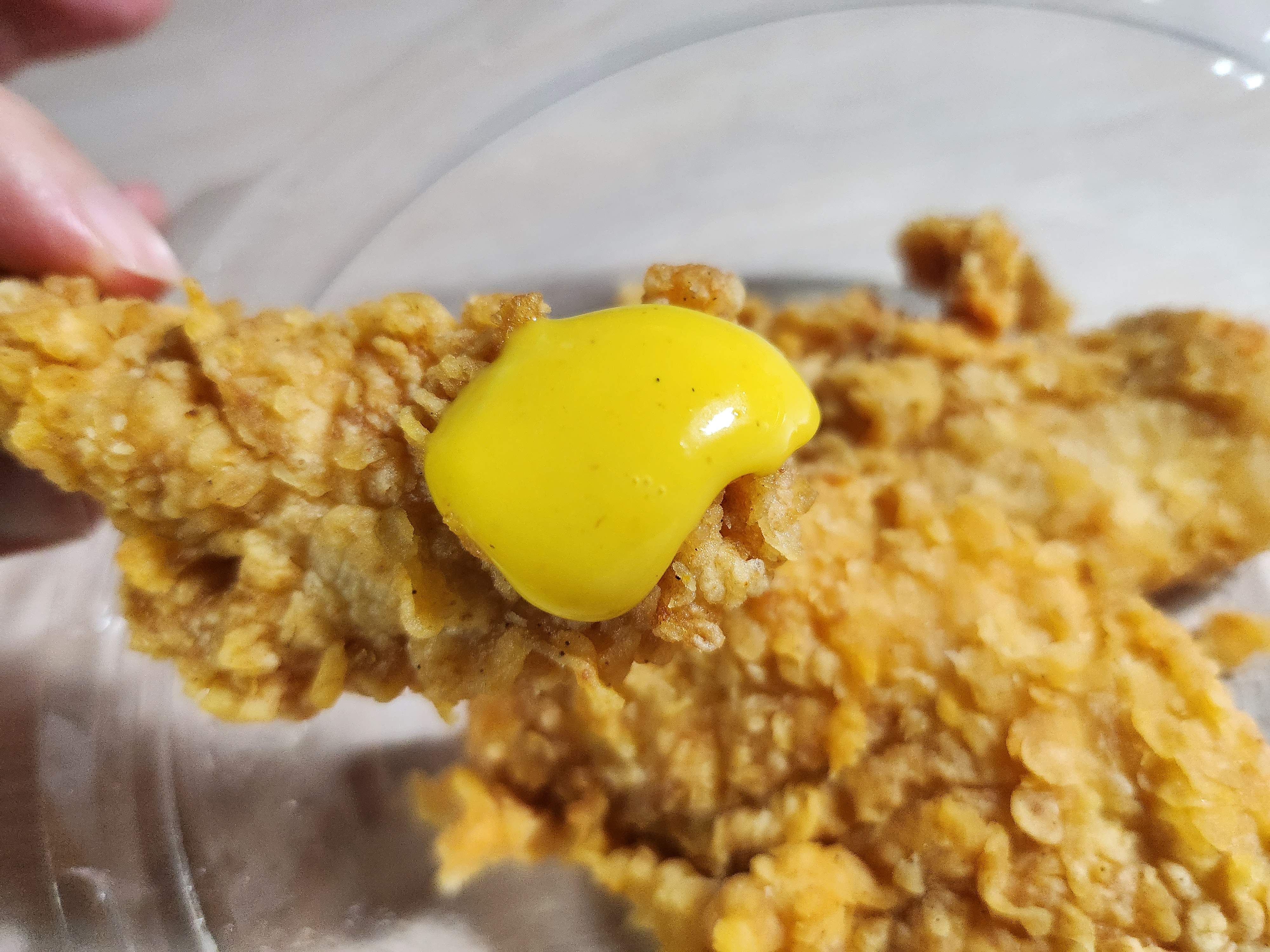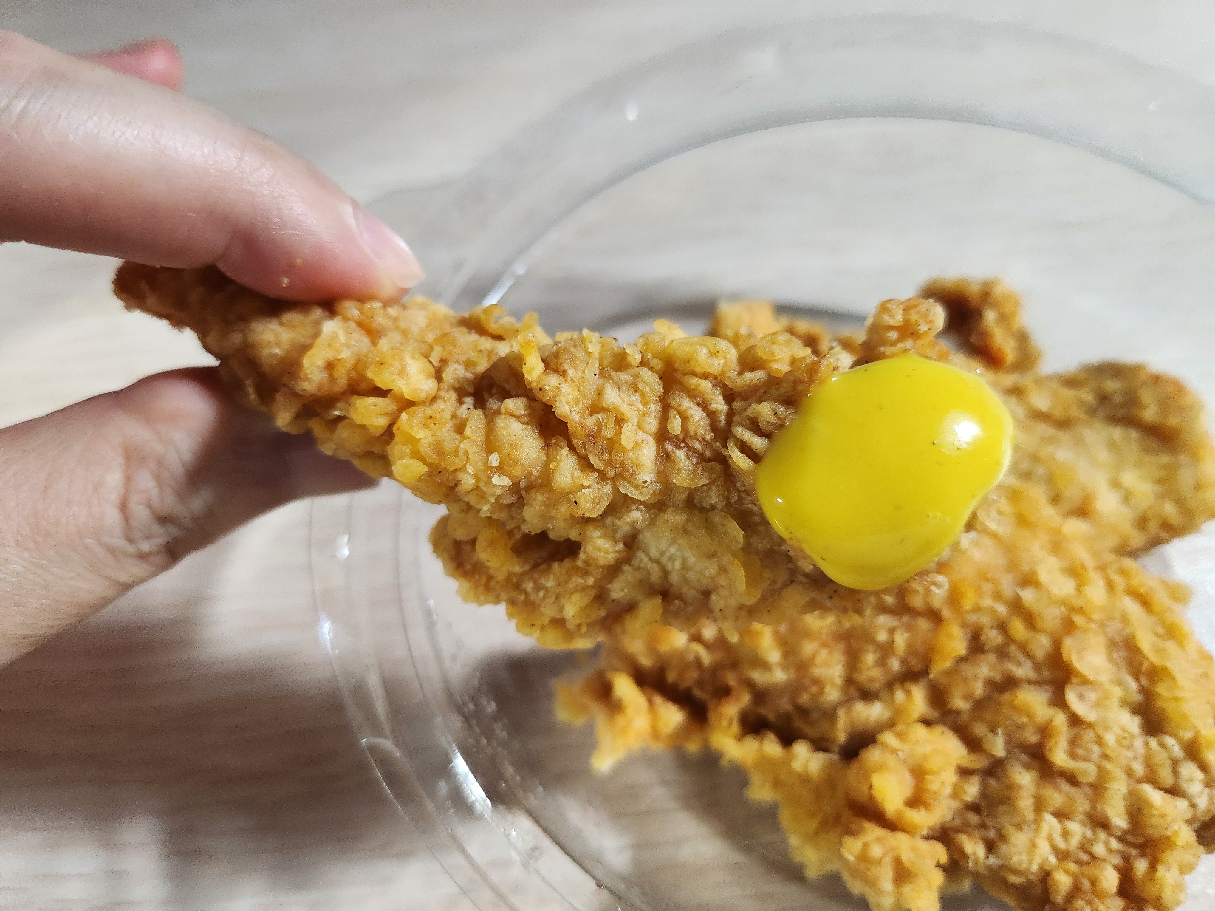 이렇게 뿌려놓으니 과연 치킨텐더인지, 아니면 허니머스터드에 치킨텐더를 곁들인것인지 헷갈릴 정도네요.