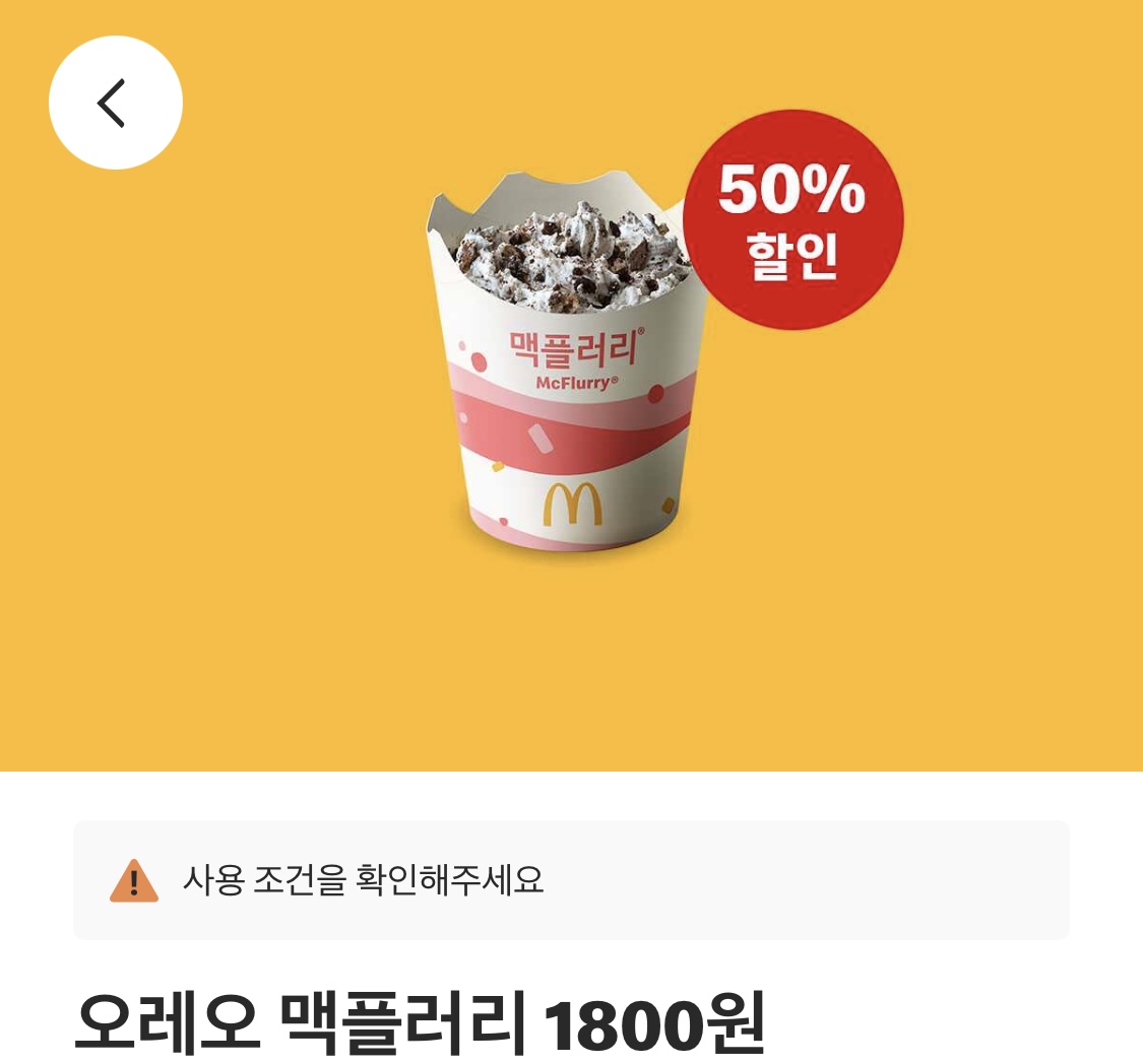 맥플러리는 거의 잊어버릴만 하면 할인되는 자주 나오는 제품이 아닌데, 이번주에는 오레오 맥플러리를 1800원의 가격으로 구입가능합니다.