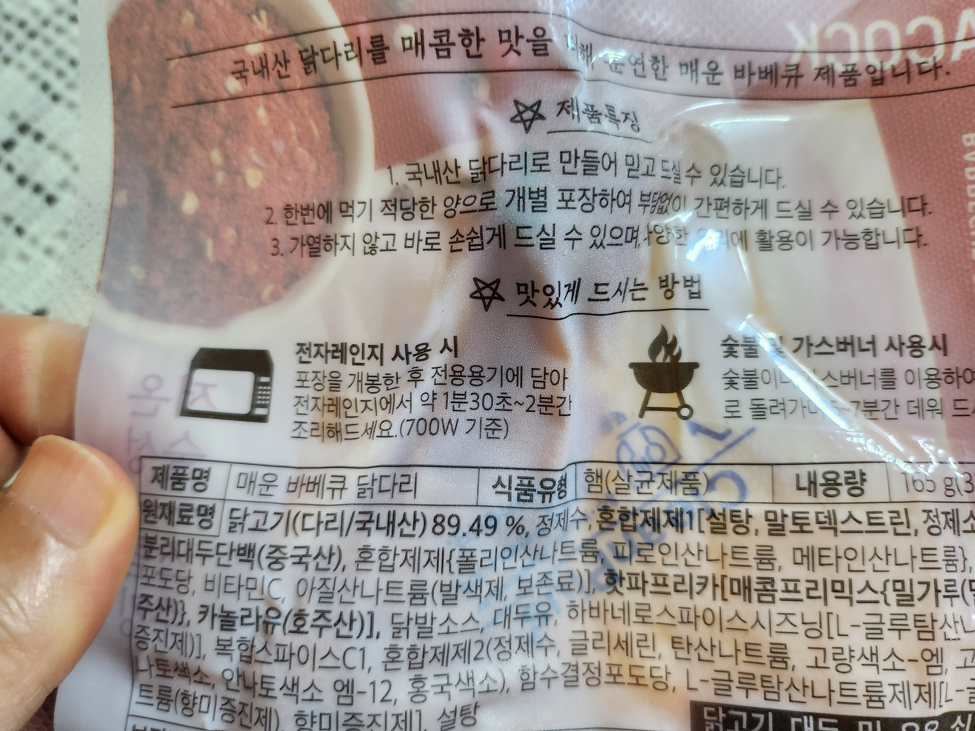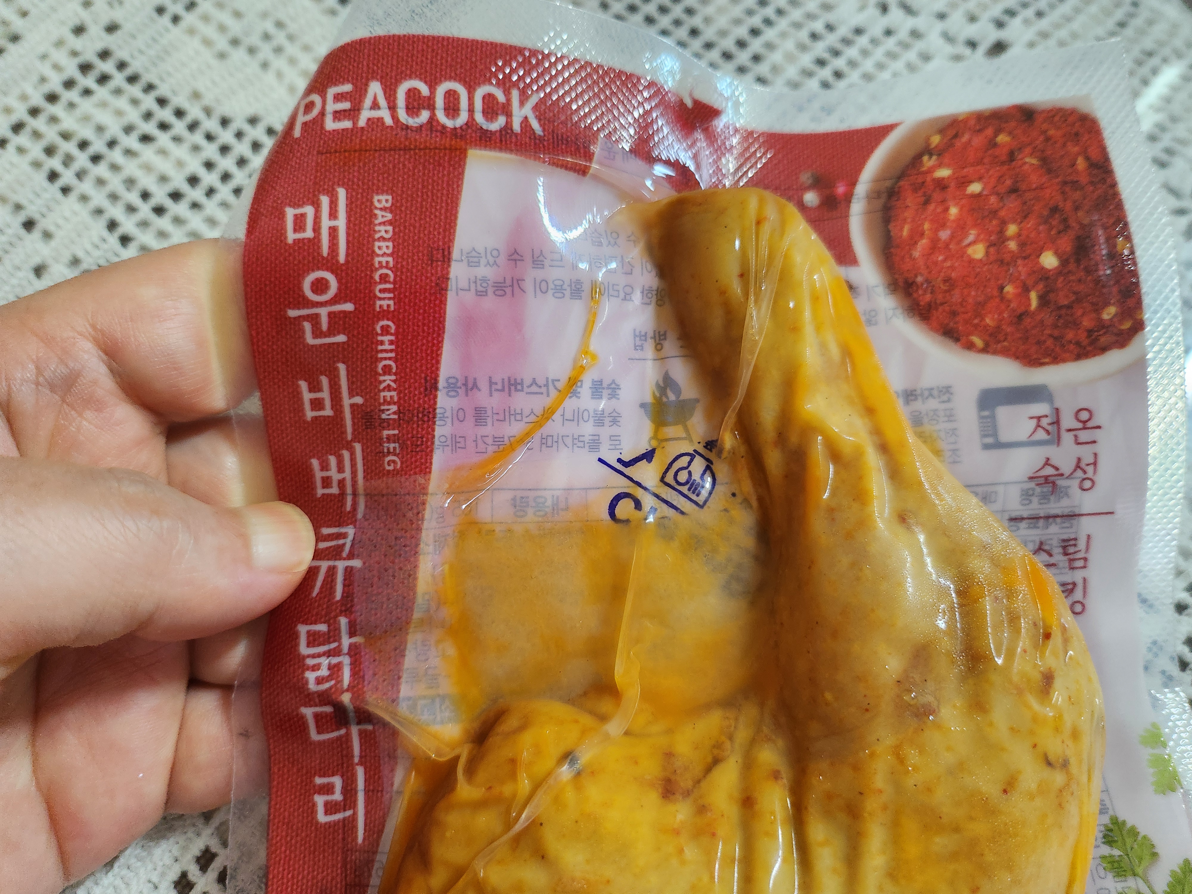 그래서 이번에는 피코크 브랜드가 붙은 매운 바베큐 닭다리를 구입해봤습니다. 그때와 비슷한 매콤한 맛을 기대하면서 나름 괜찮은 느낌을 갖게 만드네요.