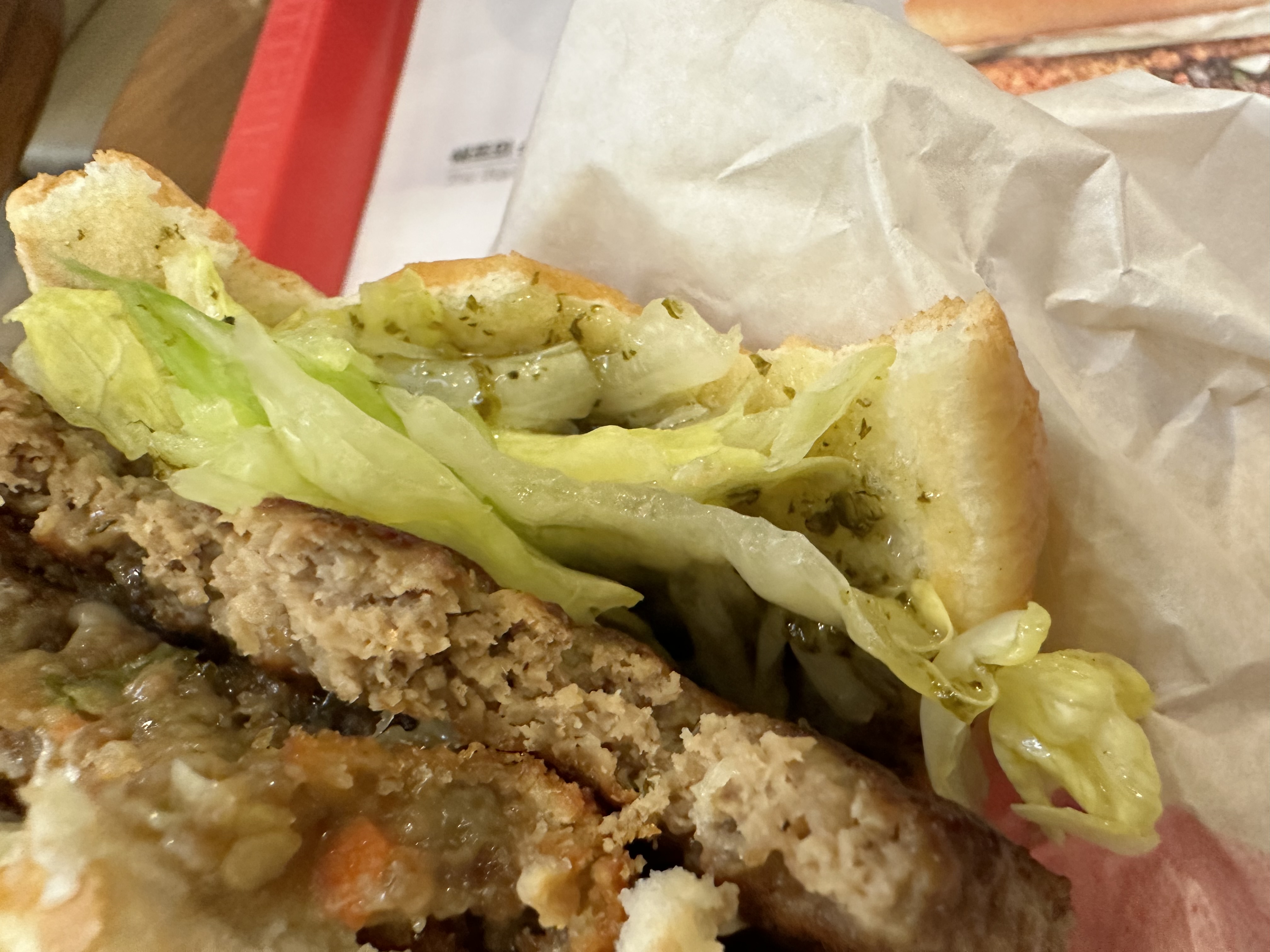 대신 패티가 큼직한게 한장 더 들어있다보니 부피에서는 상당히 차이가 있네요.