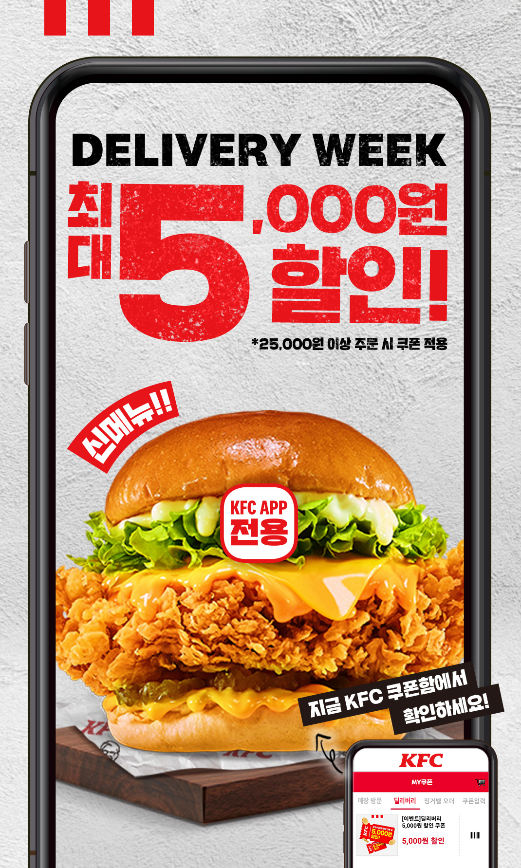 그리고 이번주동안 배달로 KFC 제품을 주문하면 최대 5천원의 할인을 받을수 있다고 합니다.