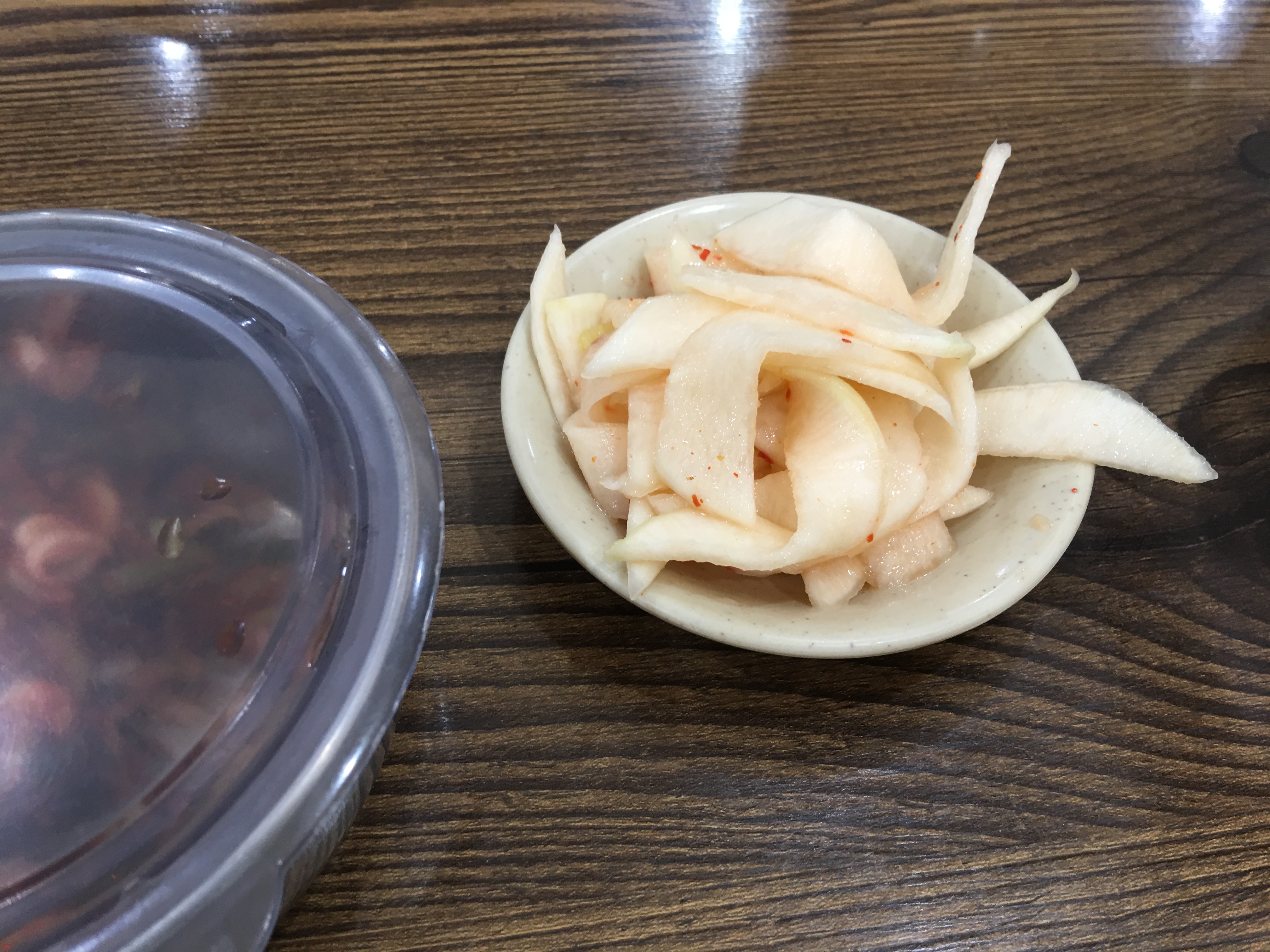 개인적으로 무절임을 그렇게 좋아하는 편이 아닌데 이집에 오면 꼭 두세번 정도 이만큼 덜어먹습니다.