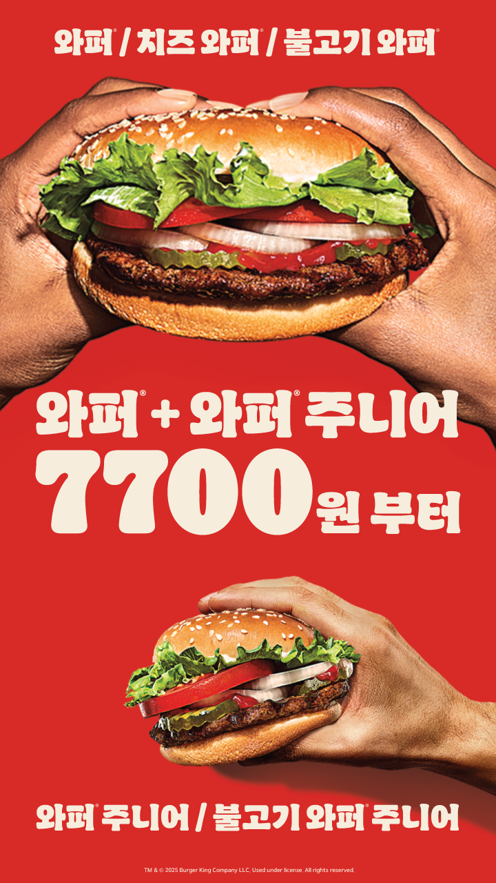이번주동안 버거킹에서 와퍼와 와퍼주니어를 함께 구입하면 7700원의 가격입니다. 이정도라면 크게 아쉽지 않을듯한 모습이긴 하지만, 여전히 버거킹 와퍼의 예전 행사가격을 기억하고 있는 분들에게는 이 가격이 달갑지 않은 모습입니다.