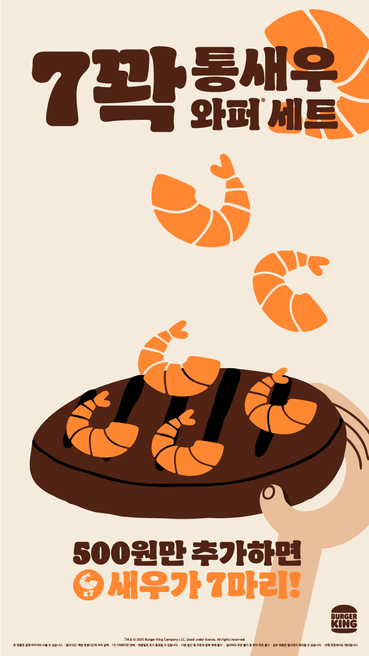 그리고 통새우와퍼 세트에 500원을 추가하면 새우 일곱마리로 업그레이드가 가능하다고 합니다.