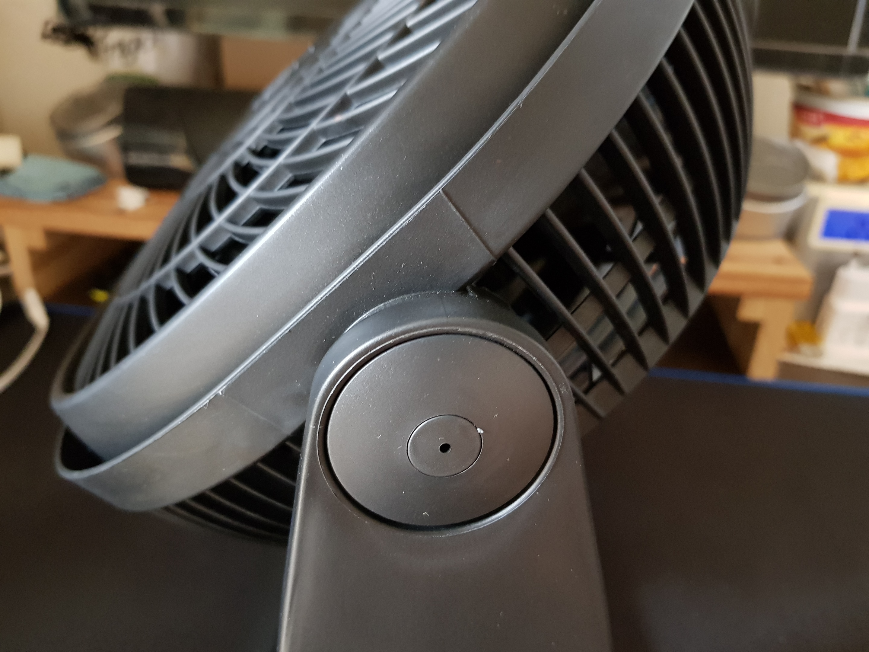 미처 사진으로 담지는 못하지만 아래쪽으로도 한칸 내려서 고정이 됩니다. 다양한 각도로 바람을 보낼수 있다는게 이 제품의 장점중 하나입니다.