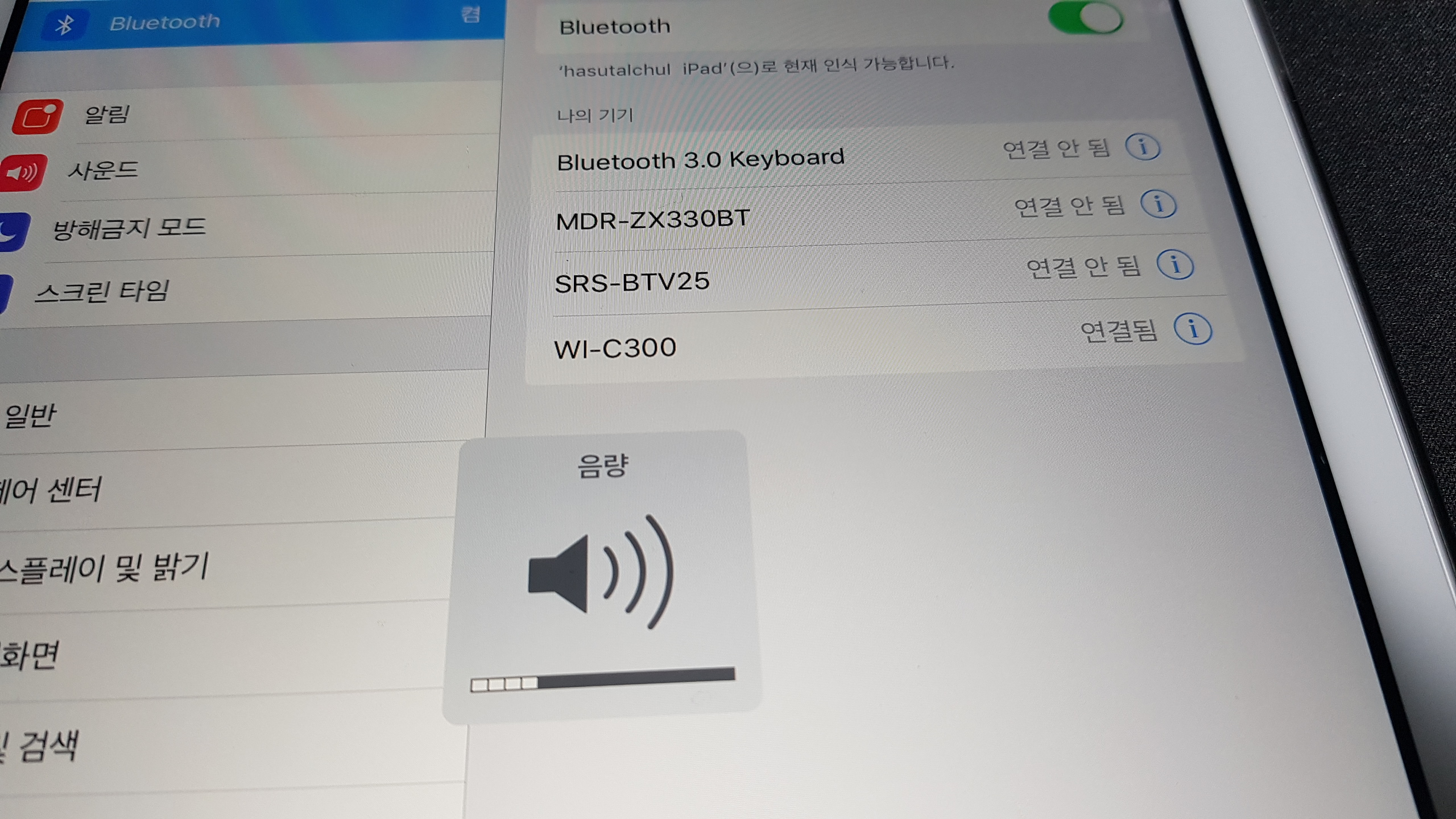 아이패드 배터리표시쪽에 간단하게나마 블루투스 배터리 잔량도 체크됩니다.