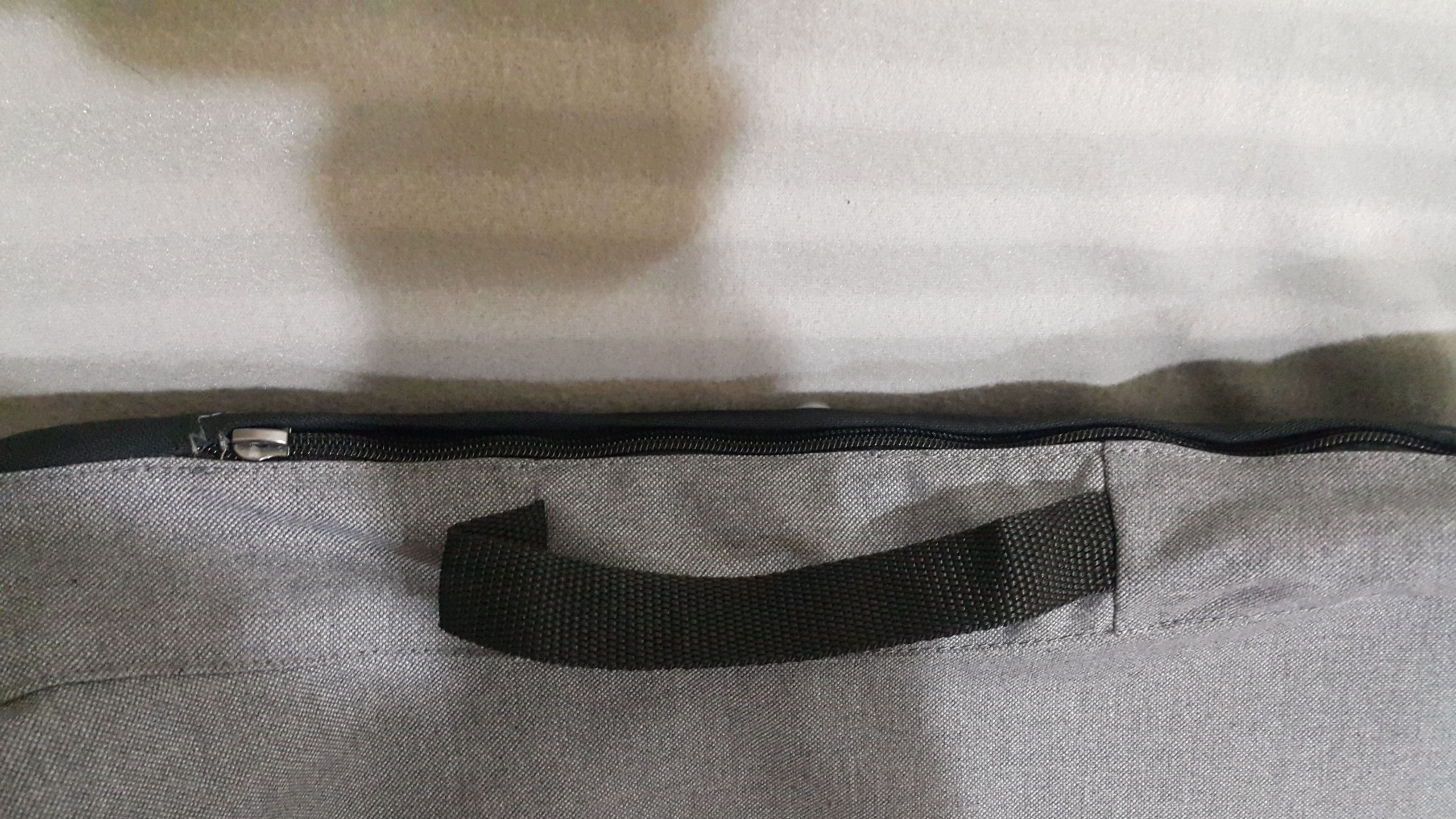 아래쪽에는 무릎에 올려놓을때 푹신하게끔 천으로 되어있고 안에 충전재가 들어있습니다.