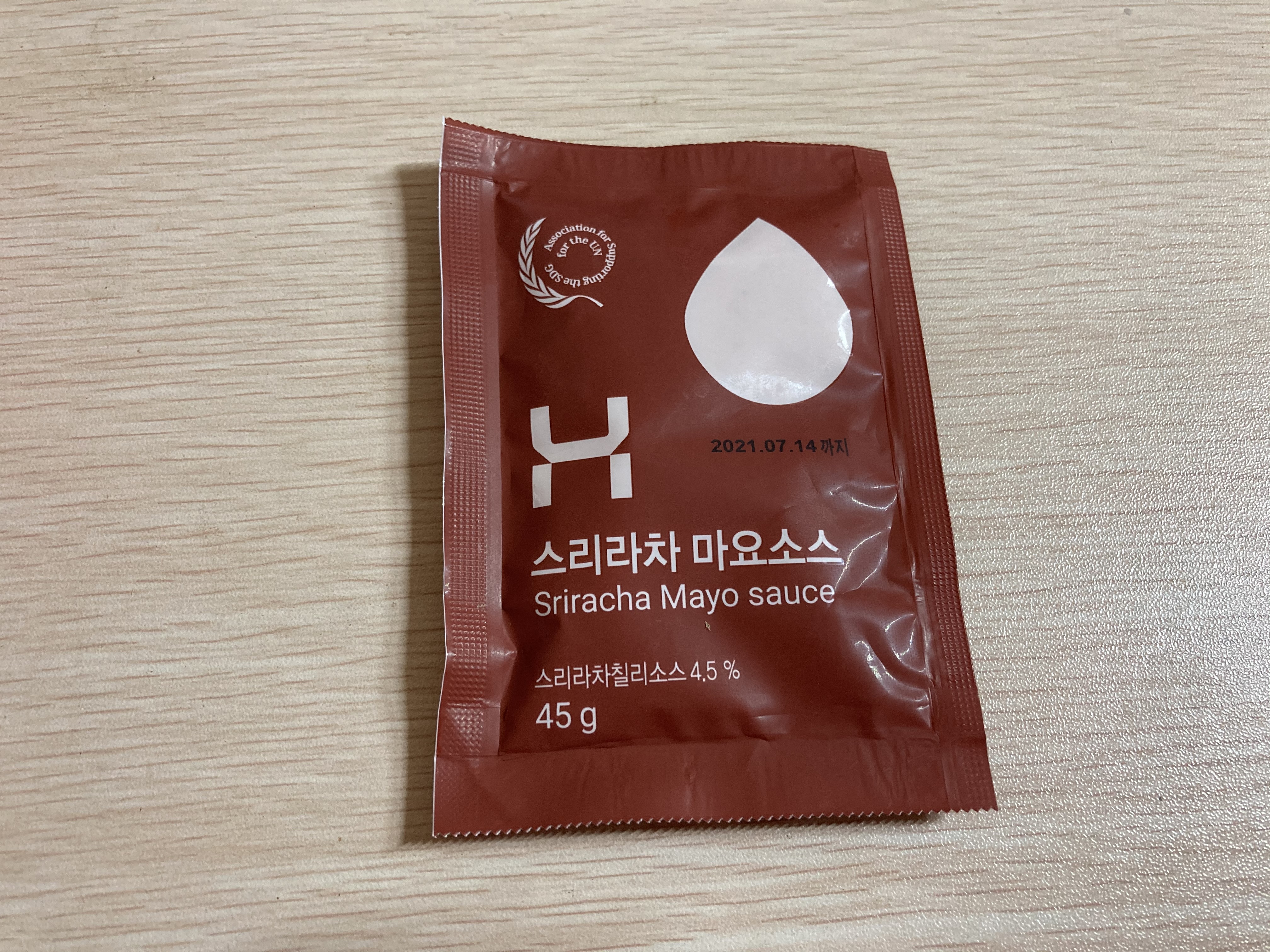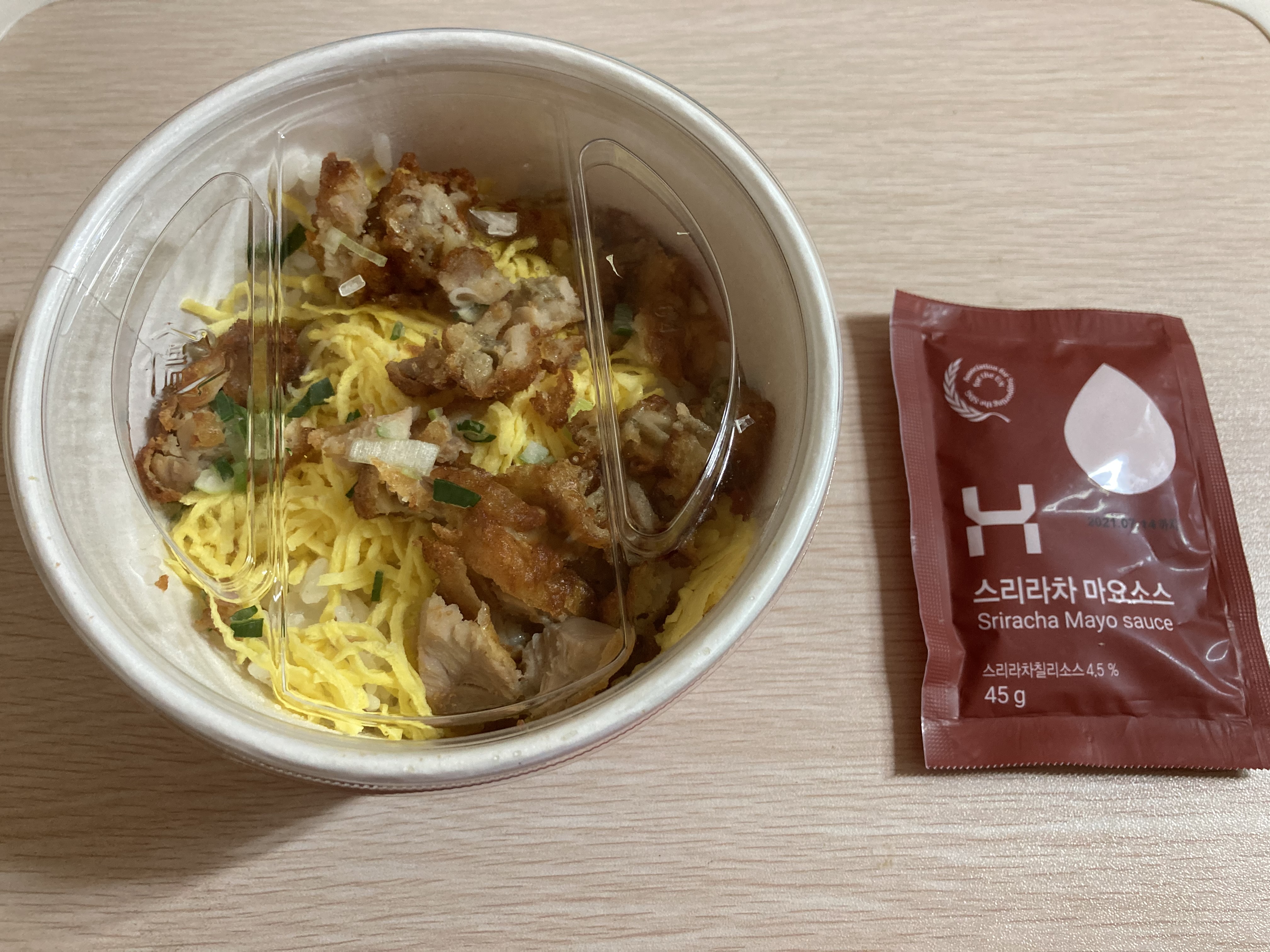 일반적으로 들어있는 치킨마요에 포함된 마요네즈보다 훨씬 큰 스리라차 마요소스입니다.