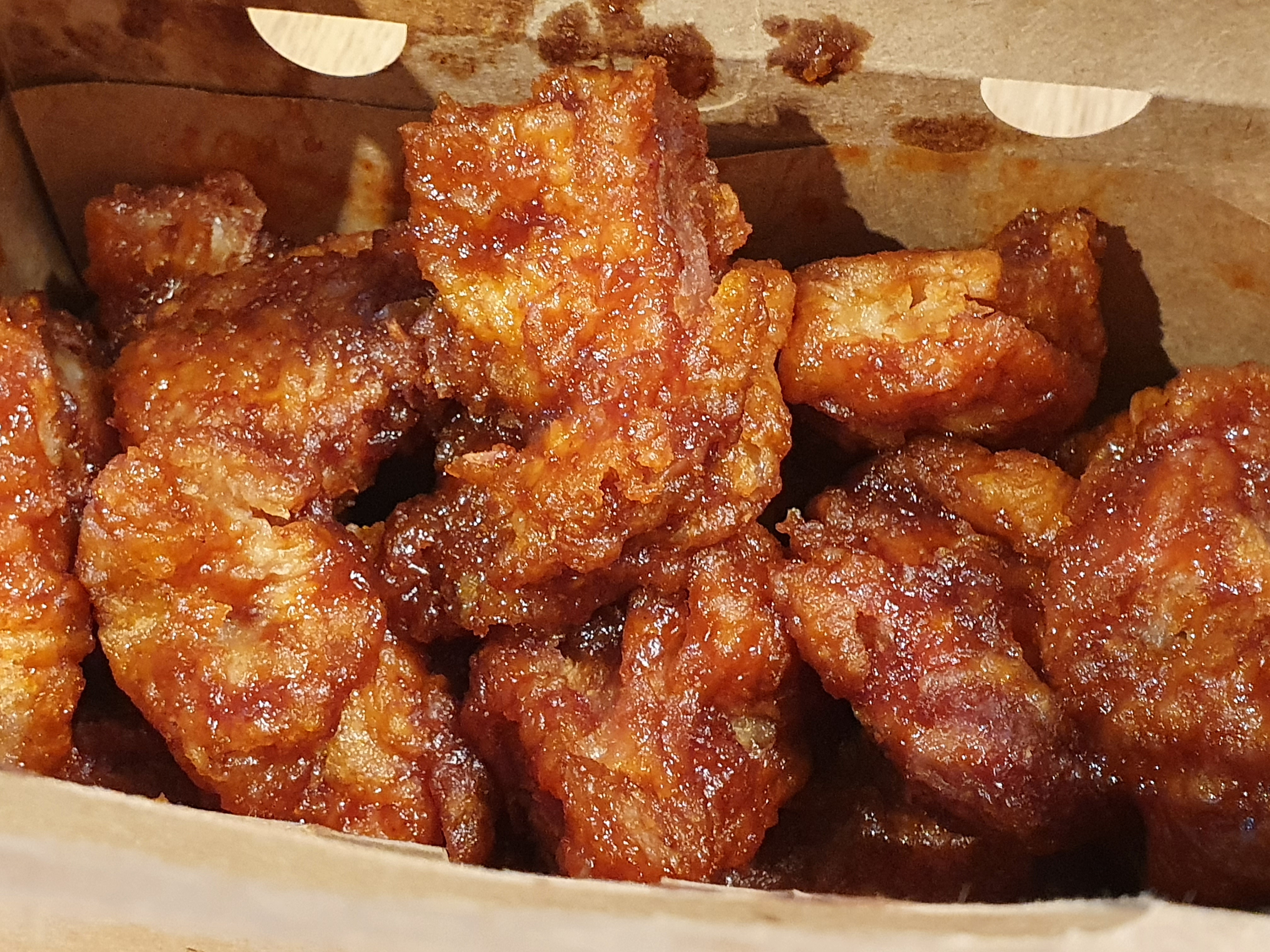 그래도 튀김옷과 양념의 맛은 나쁘지 않았습니다. 특히 매운 양념이 잘 스며들어 맛이 좋았습니다.