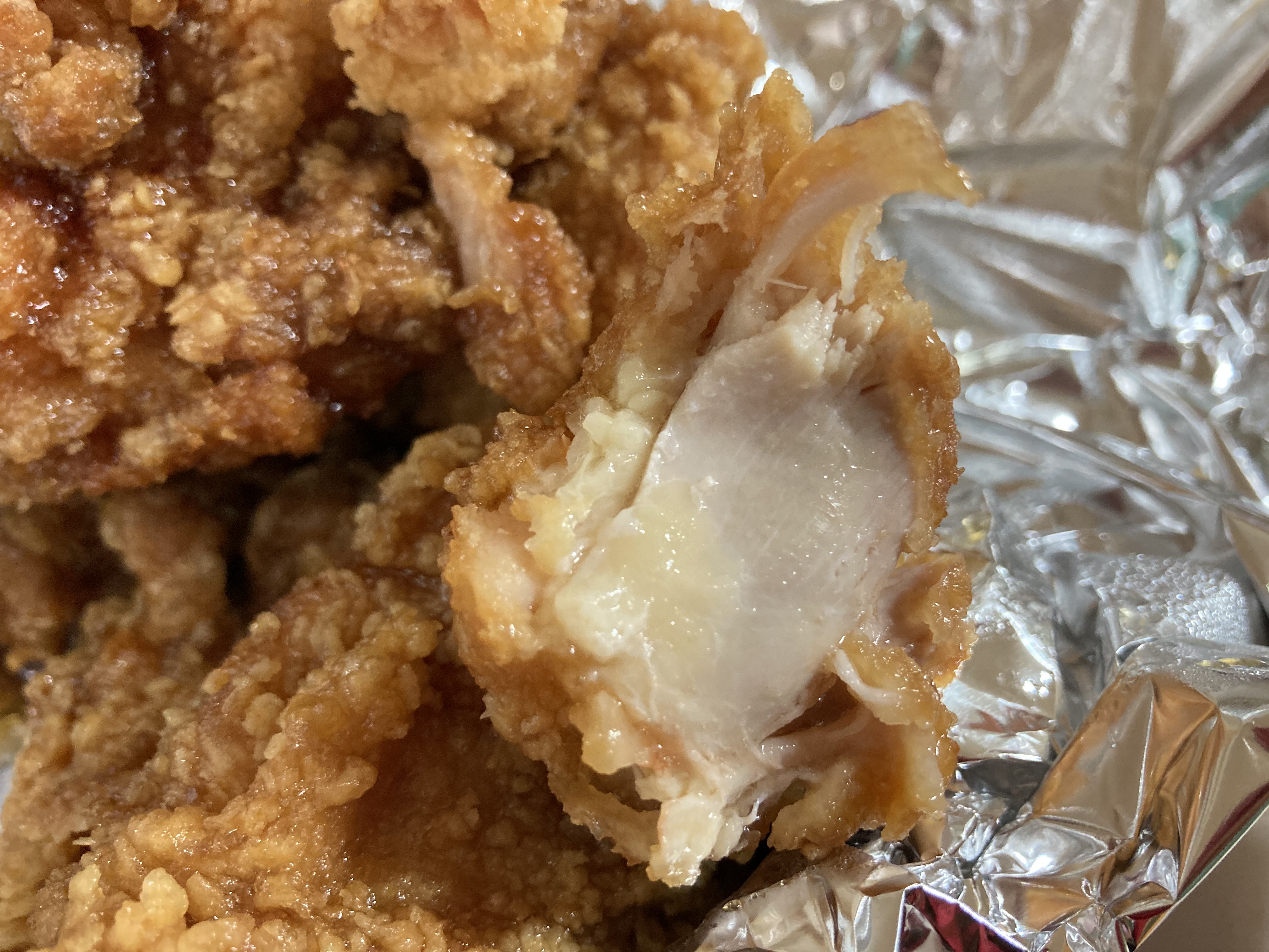 간장치킨을 살짝 잘라보니 닭도 꽤 신선하네요.